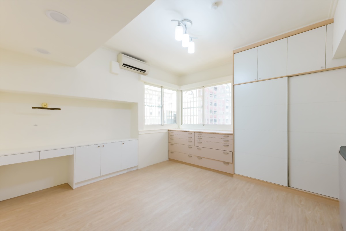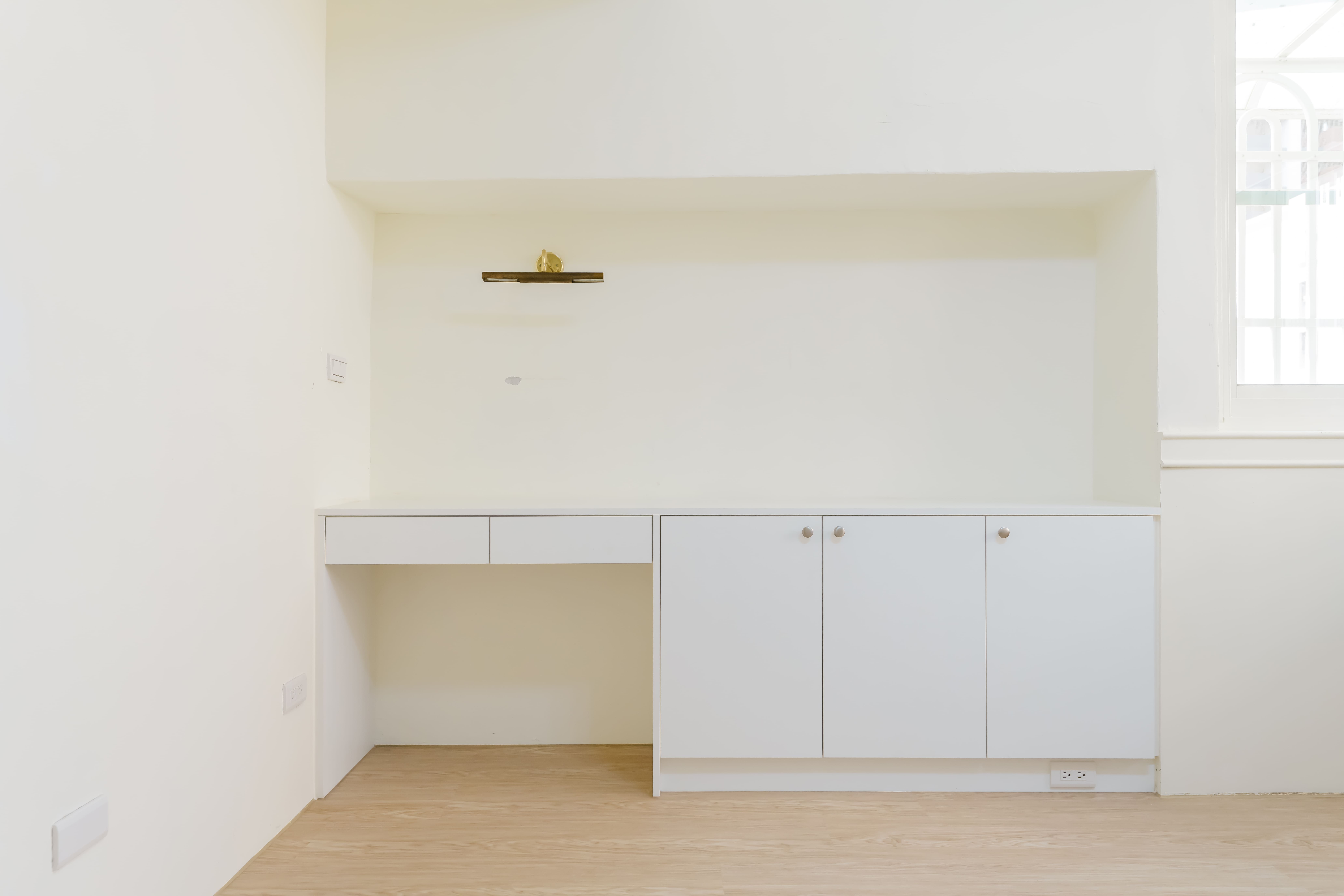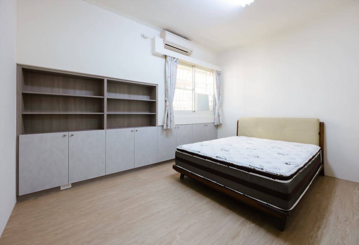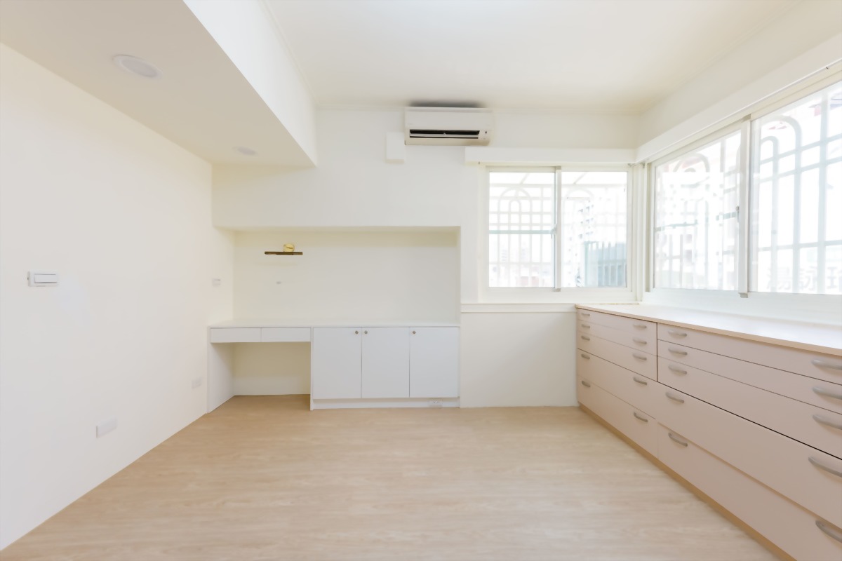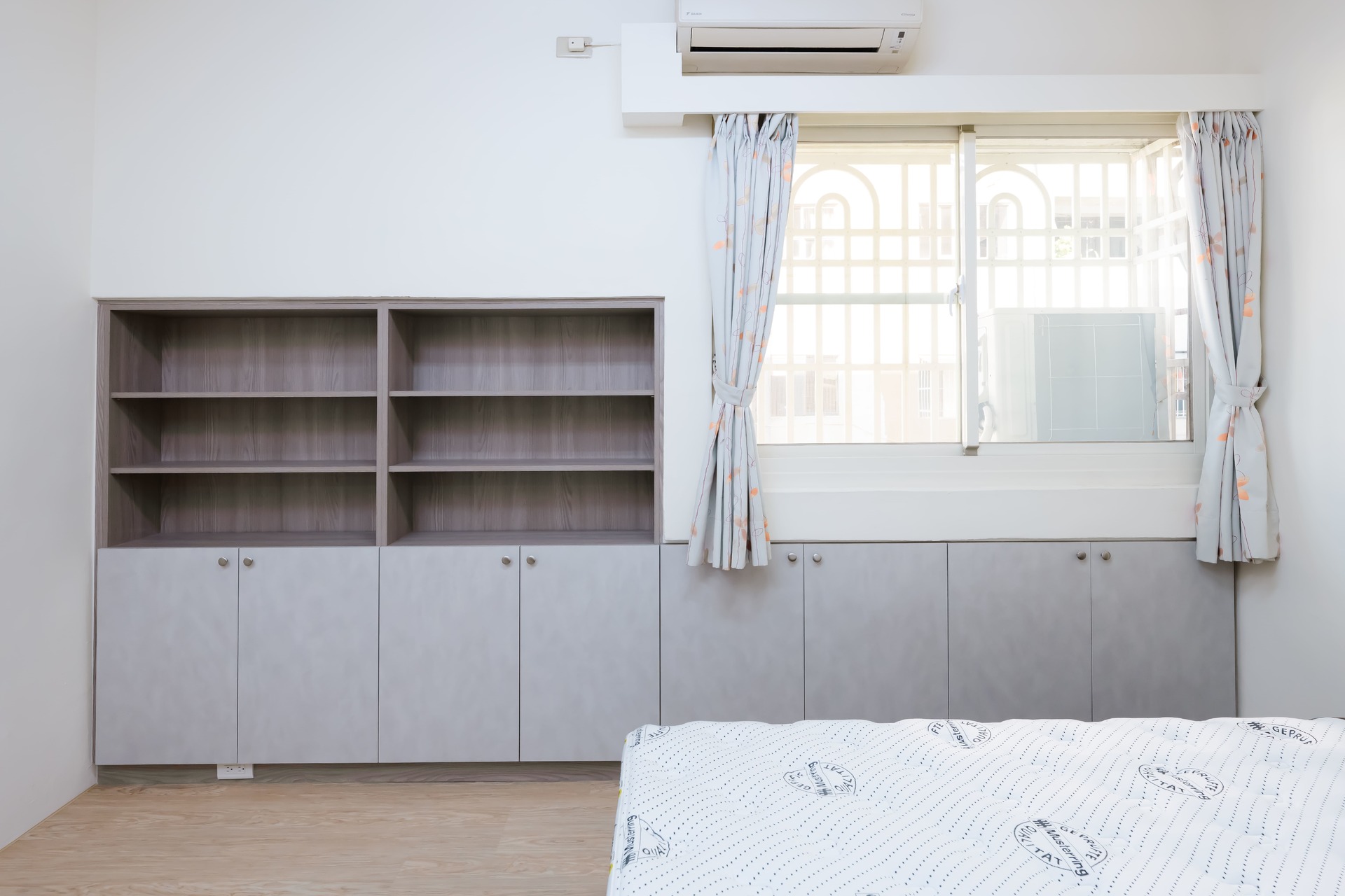 另一間臥室裝潢,也針對一些較難配置的傢俱(如窗下),利用精簡預算好朋友:系統櫃搭配。