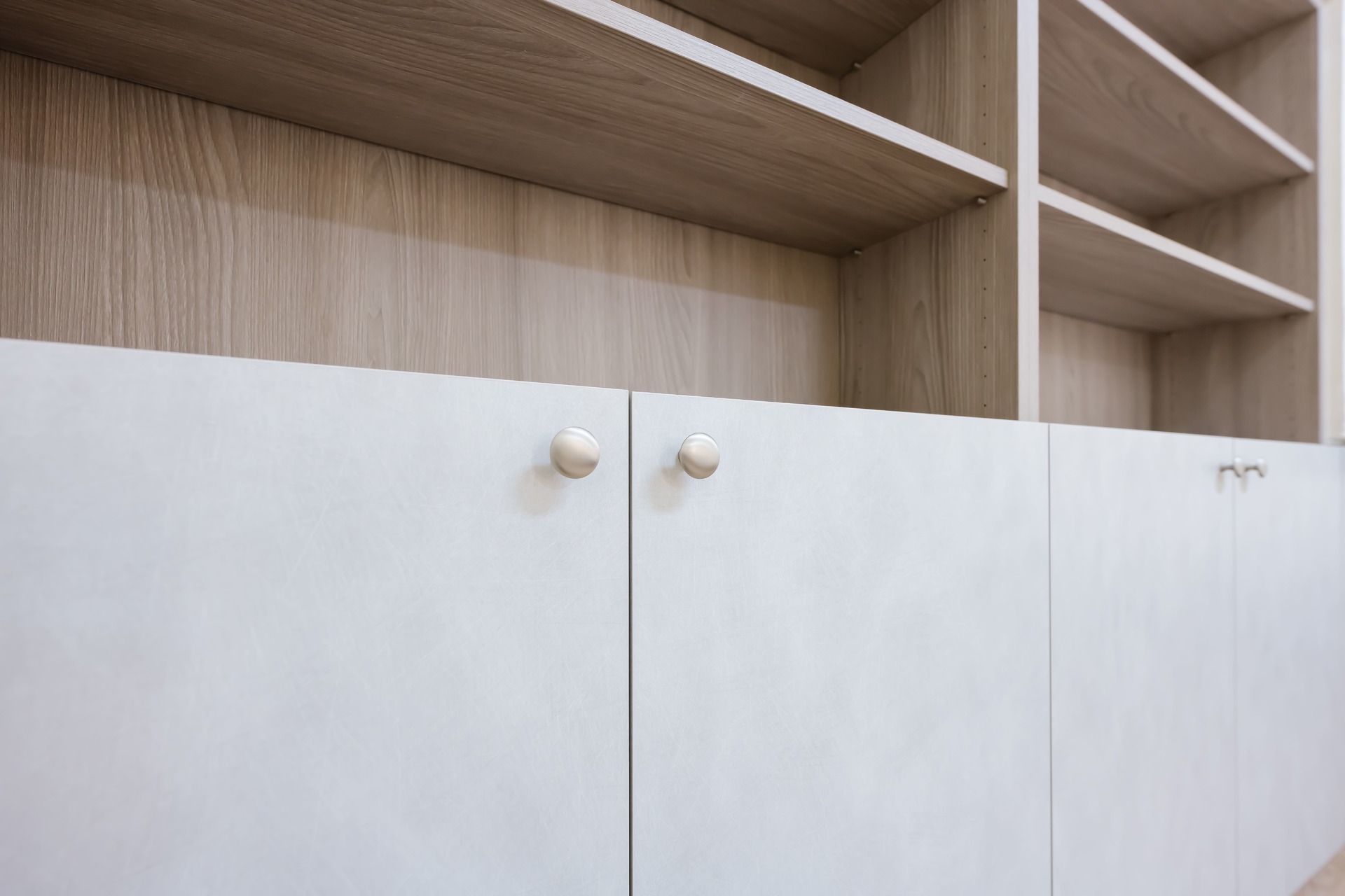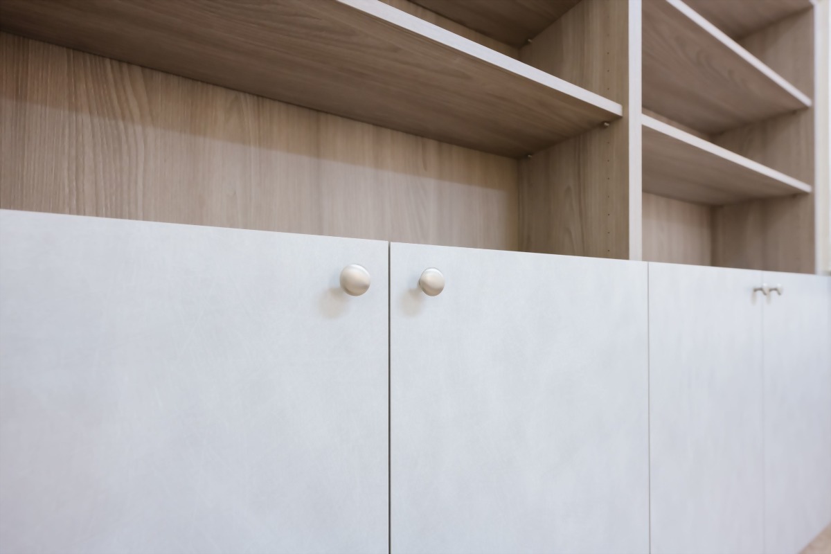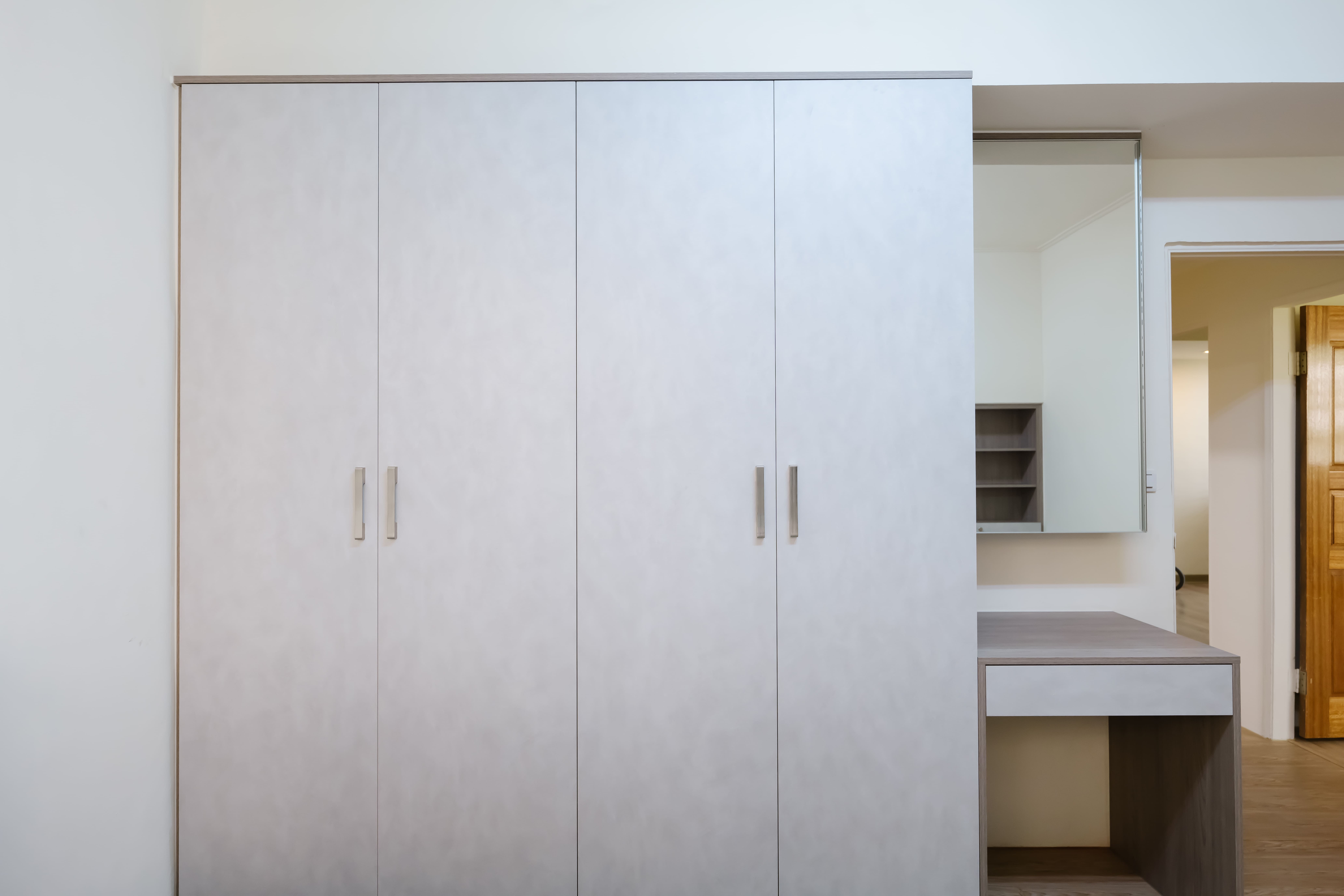 以系統櫃的方式的置入如衣櫃、化妝櫃等櫃體,不僅預算較客製來的精簡,其海量收納機能也都備足,能裝又能省荷包。