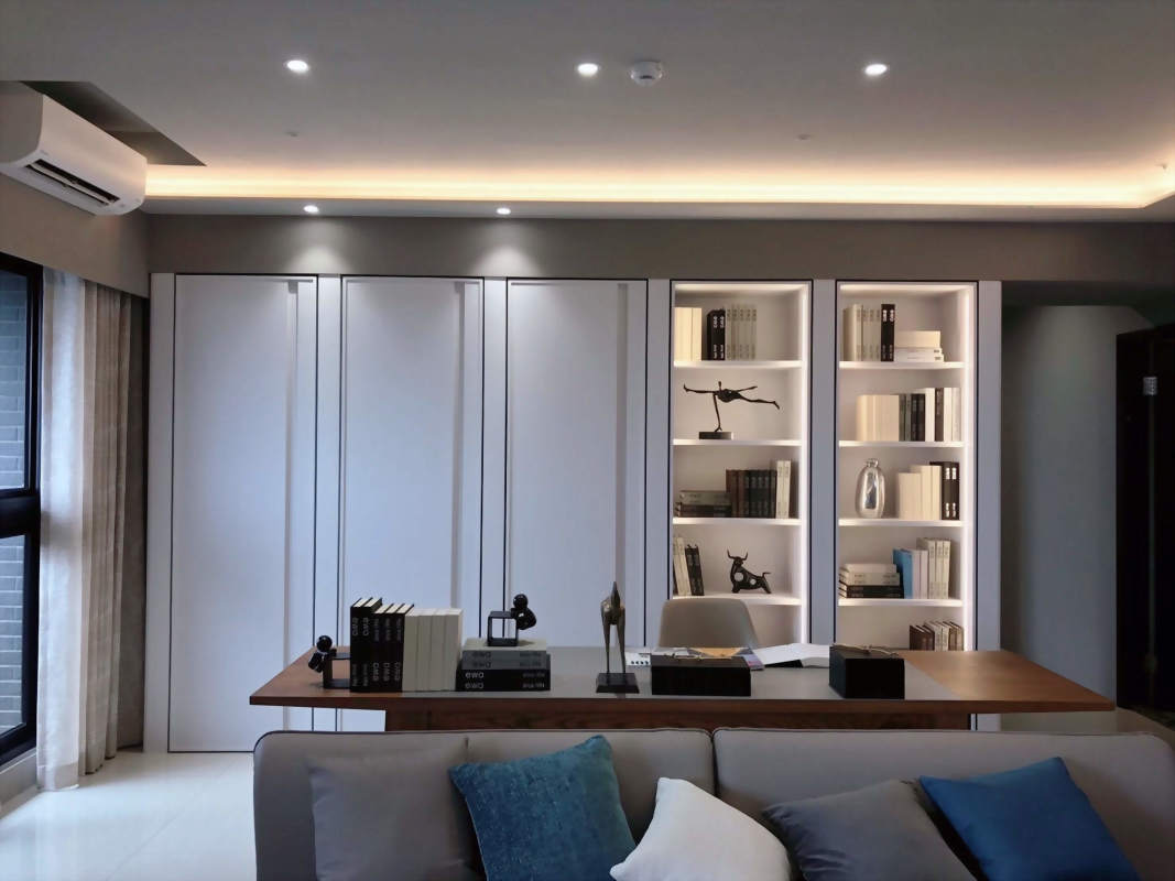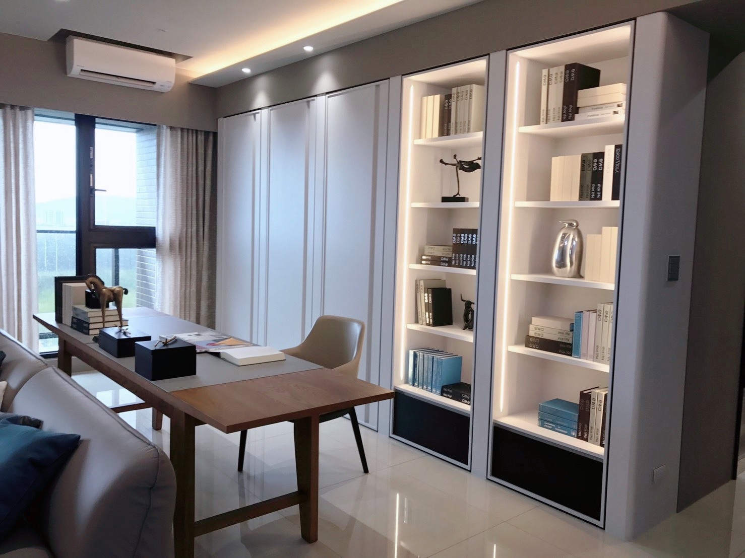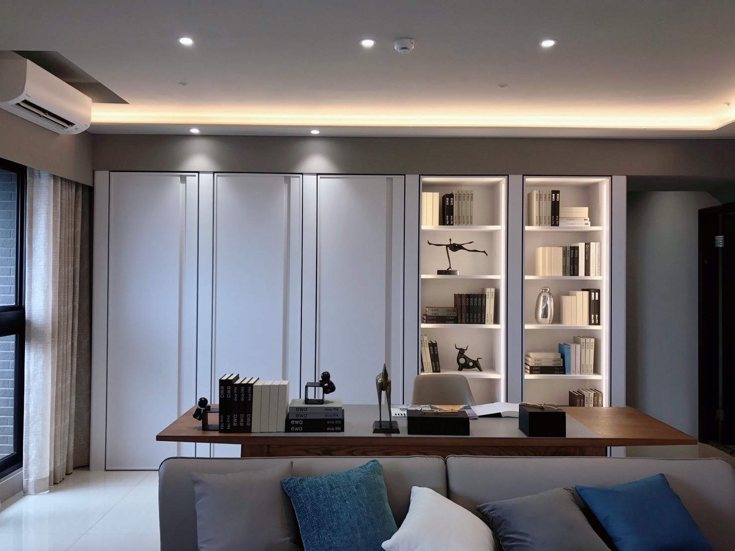在室內裝潢設計中,開放式書房安排的書牆書櫃,輔以局部開放的空間設計、搭配線條及燈光修飾,同步滿足收納與展示需求!