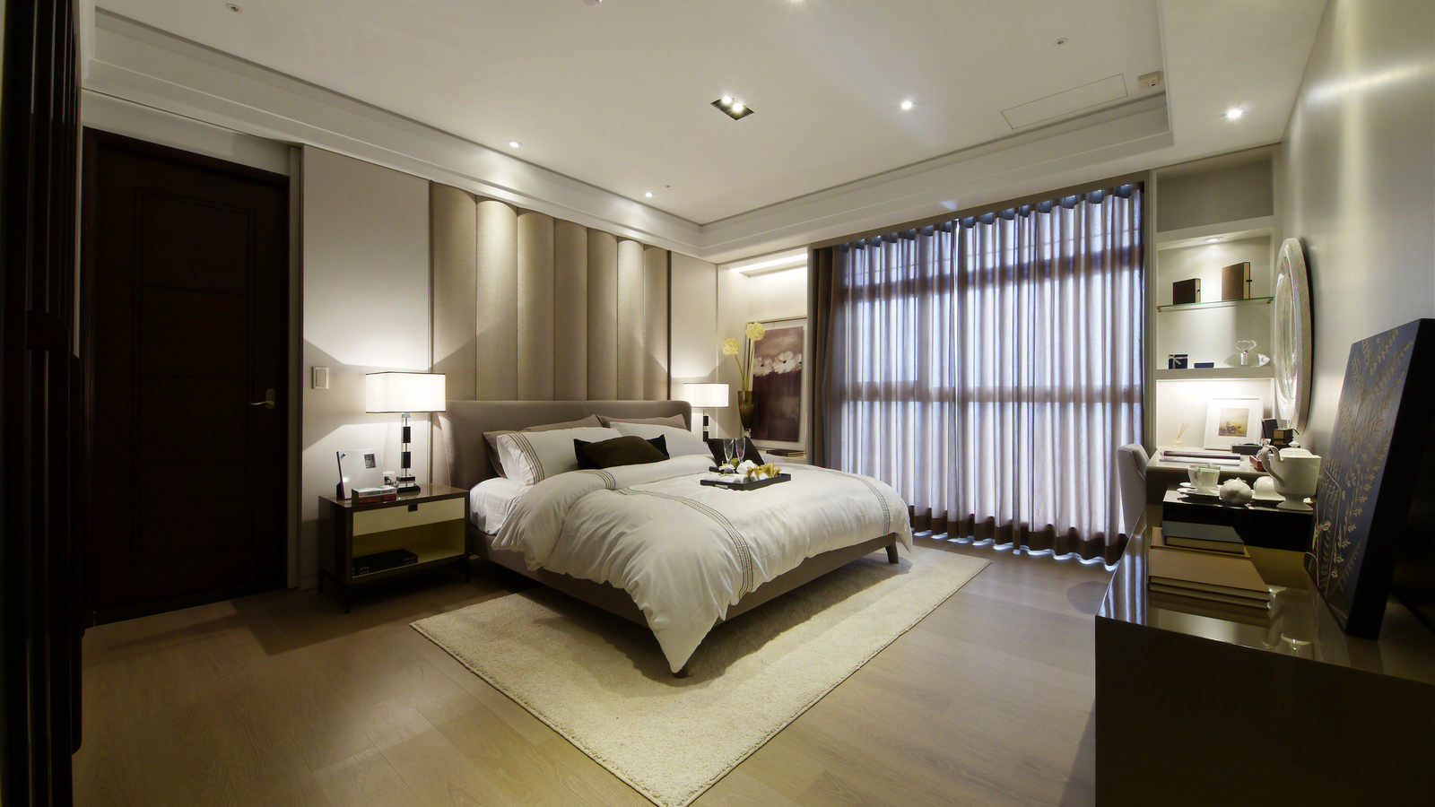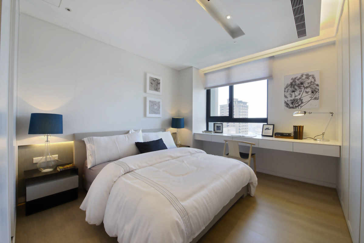 微古典加上現代的裝潢風格結合,恰到好處的詮釋溫柔的意境,給人臥室該有的安全感及歸屬,床頭設計的部分採用最經典的對稱式設計,搭配床頭材質的選用,恰到好處的賦予滿滿的古典風格。