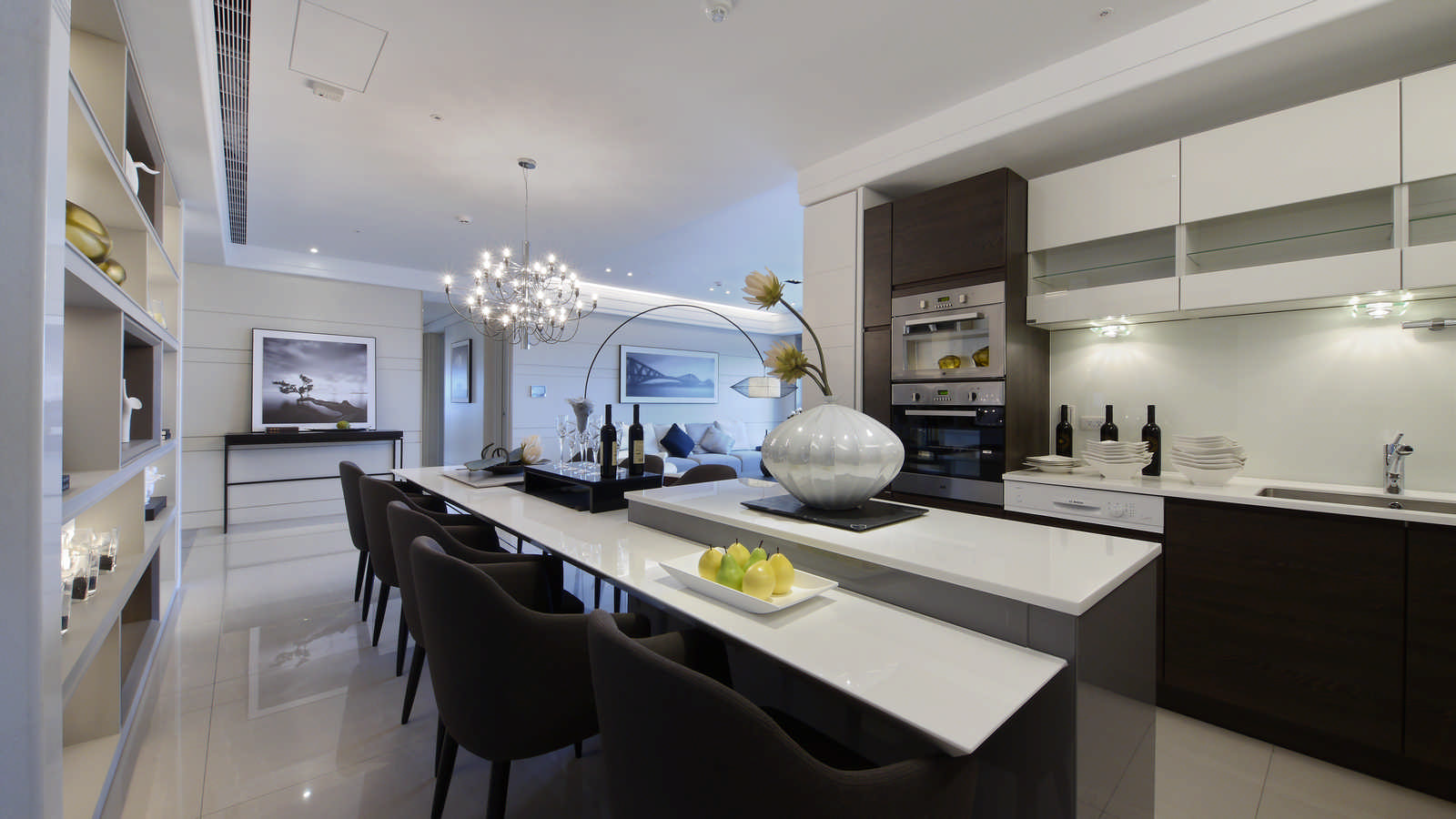 在本區的規劃 廚房與餐桌的中央有個小中島設計作為分隔,也可當為餐廳及廚坊的為分界,提升整體的機能性及美觀。