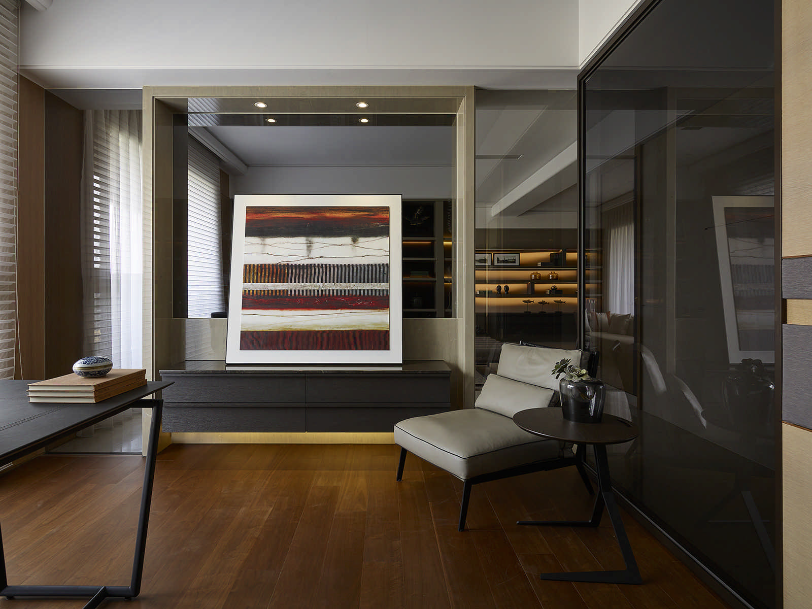書房中的畫作,營造空間設計裡的藝術層次感,也提升居家室內設計的心靈生活品味。