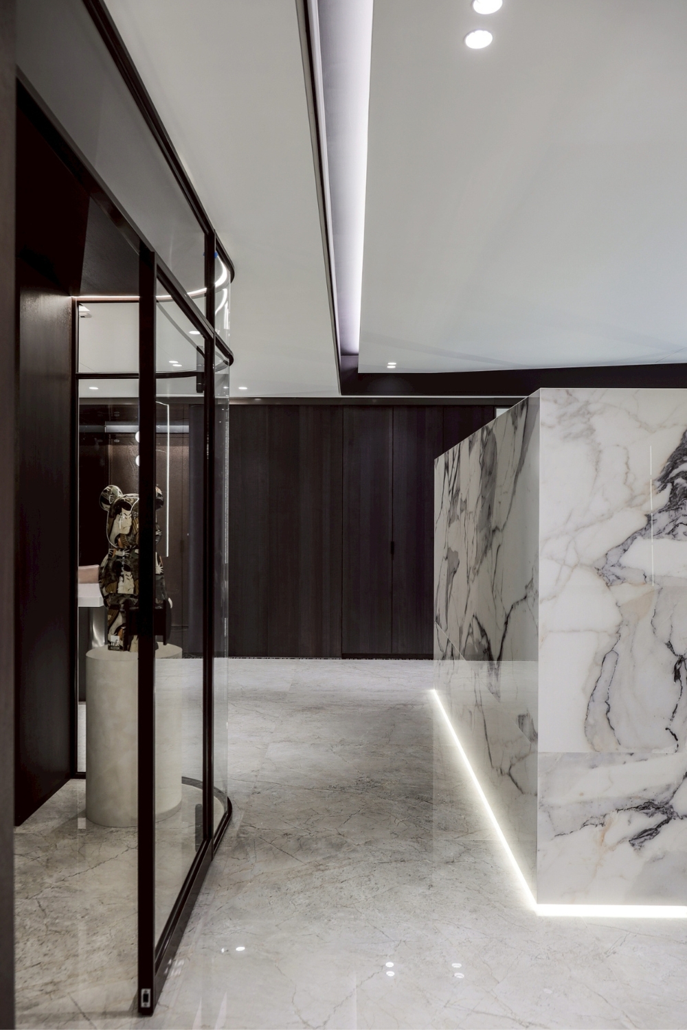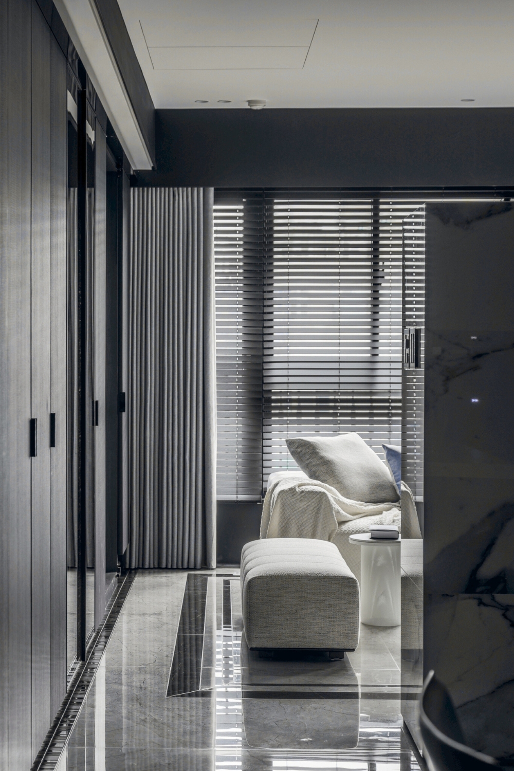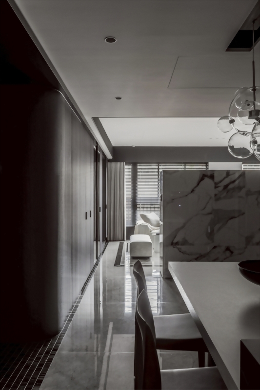 以「沉靜中的奢華」為設計核心,透過灰階調性與簡約線條構築空間秩序,讓光影、材質與比例成為主角。去除繁複裝飾,回歸生活本質,在低調中蘊藏細節,呈現現代輕奢的生活哲學。