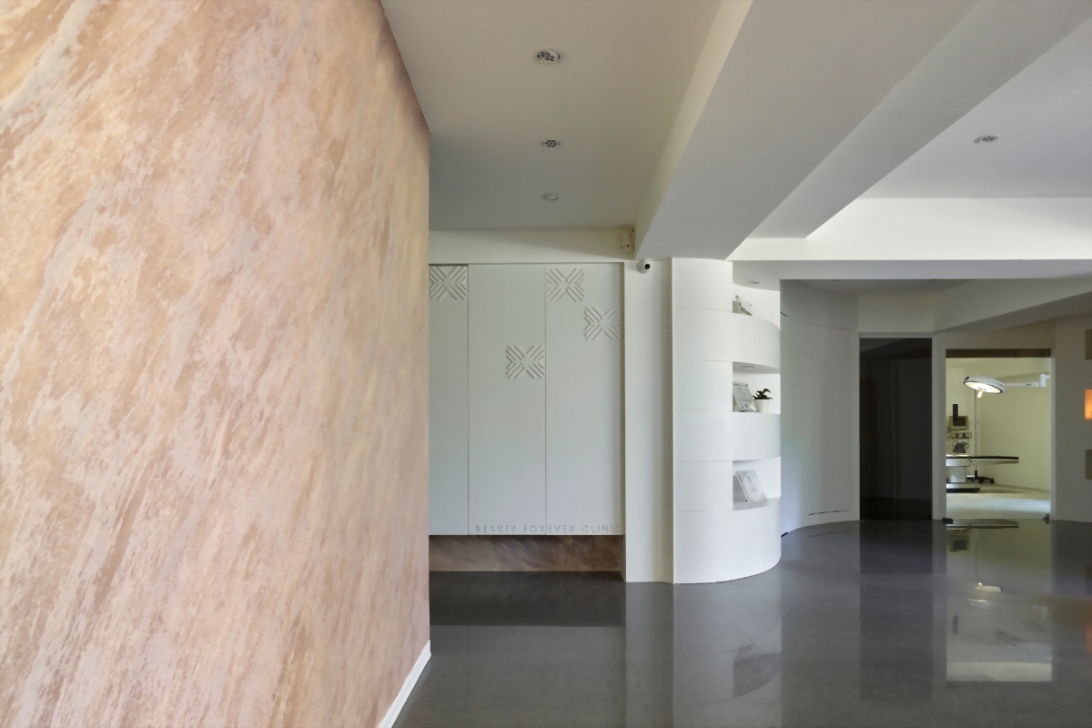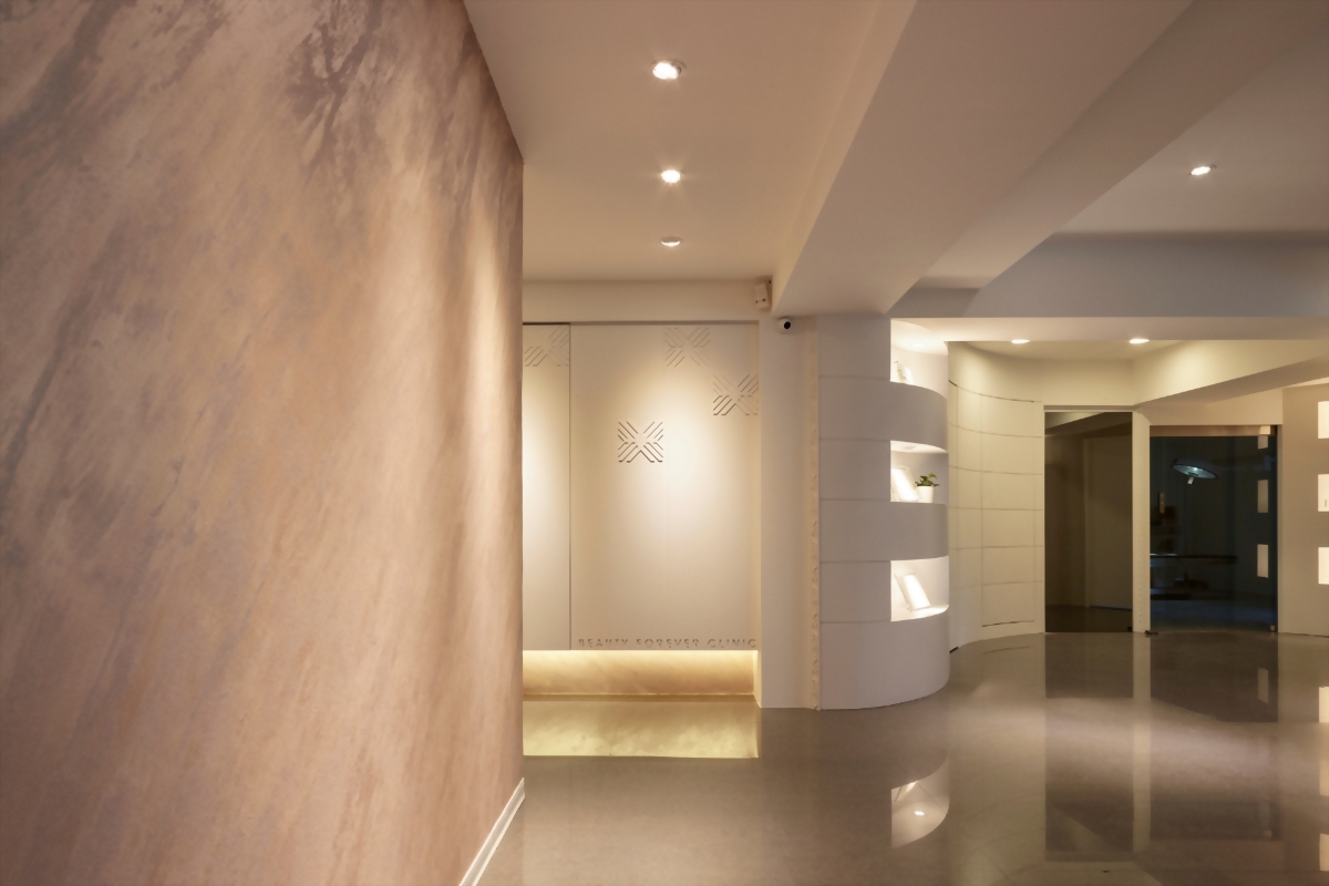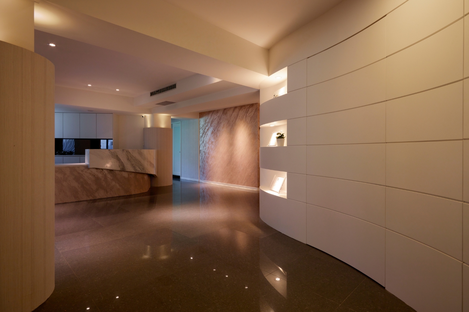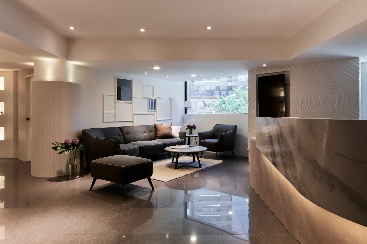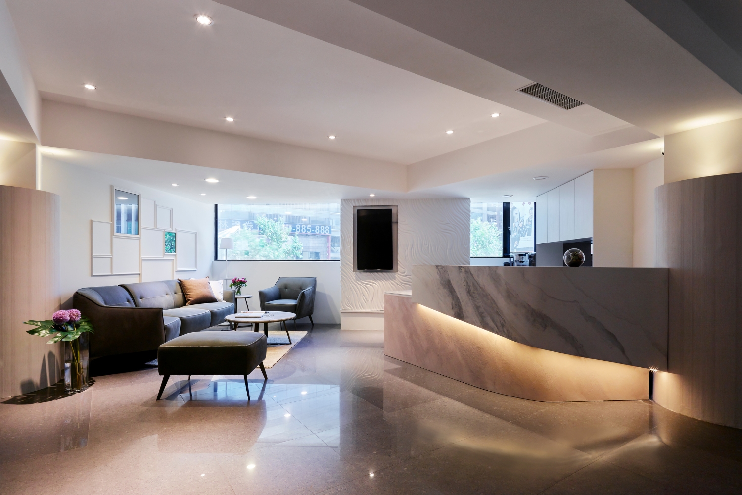 在敦南靜謐的城市軸線裡,空間以柔和的米白與石紋相互映襯,勾勒出一種內斂而不失精緻的現代輕奢氛圍。設計以新古典語彙為基底,透過弧形牆面、層次光影與細膩線條,重新詮釋診所空間的溫度與專業。柔光穿梭於每一道弧面之間,使候診區更顯從容優雅,宛如精品沙龍般的自在節奏,讓人於療癒之餘,也感受生活美學的深度。