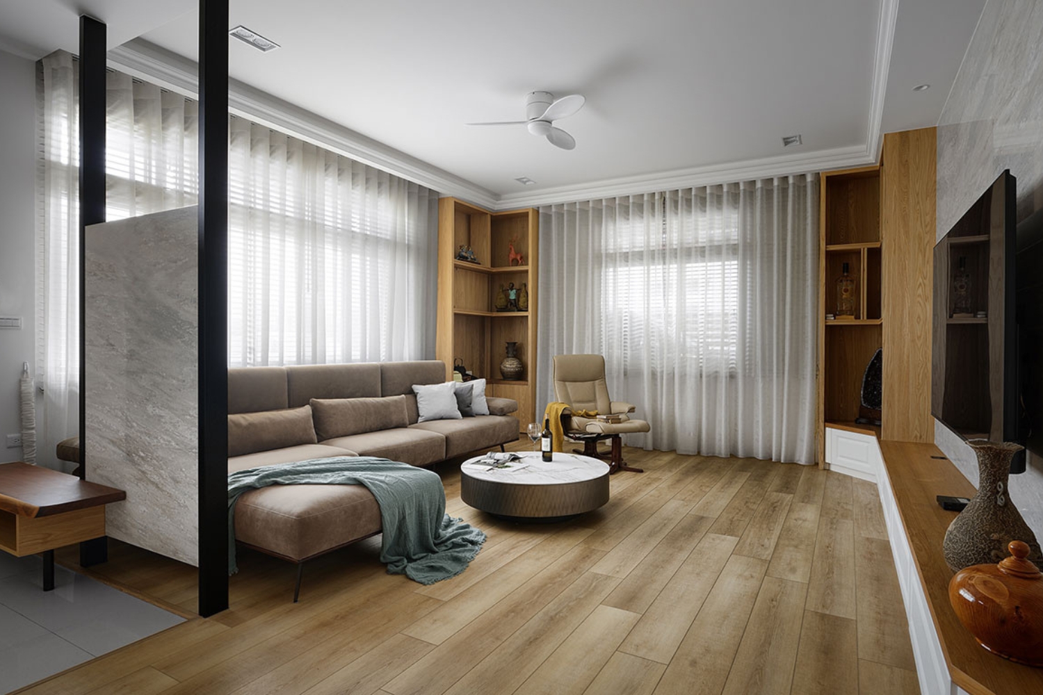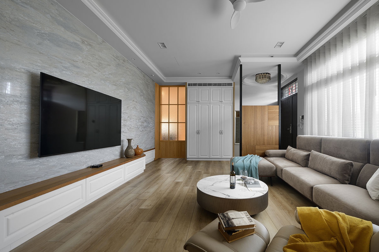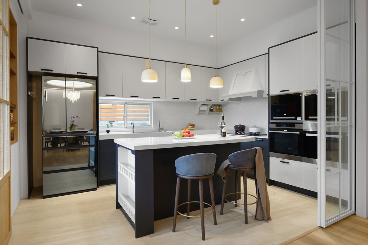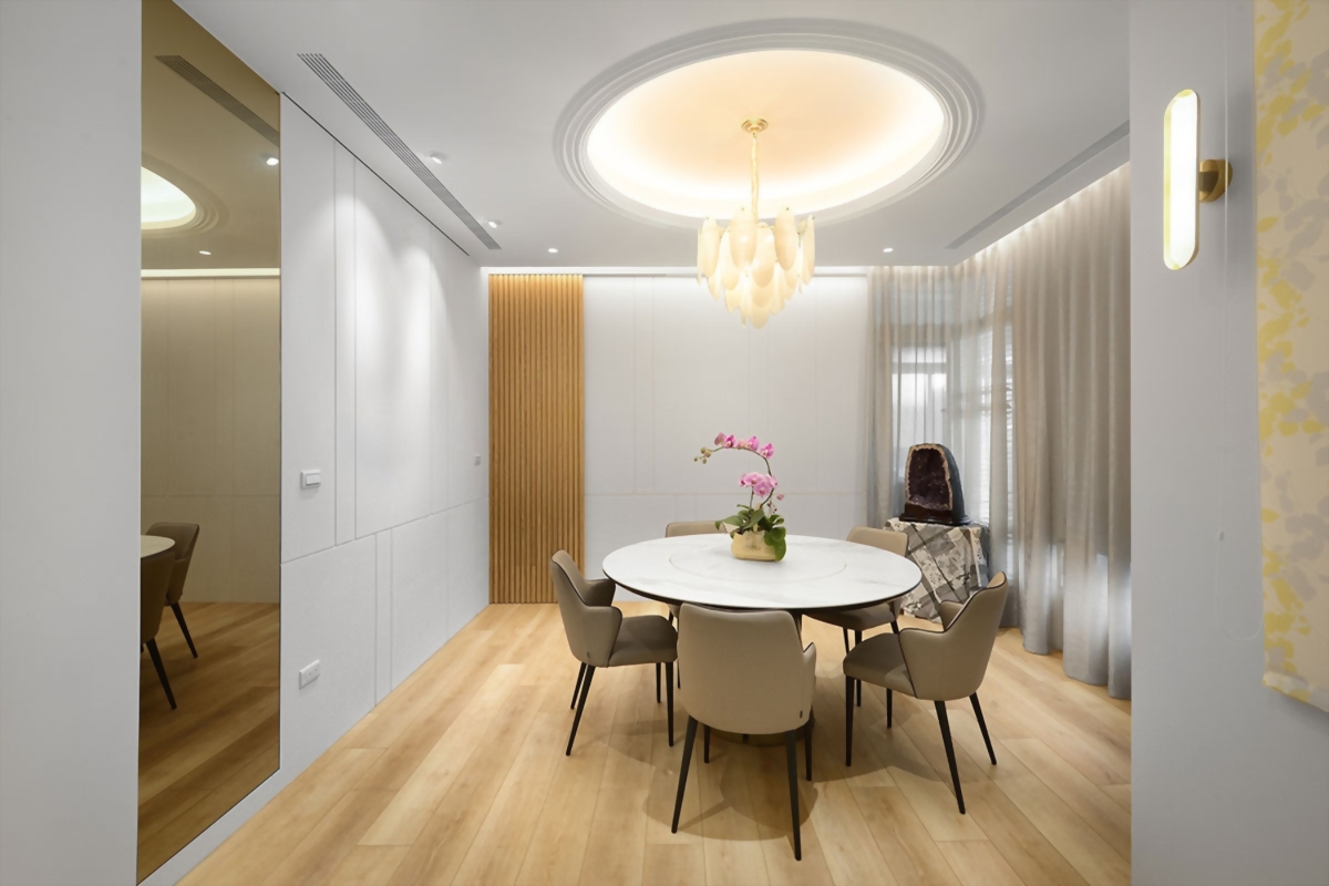 以美式設計語彙打造符合東方生活習慣的空間,透過能機能設計串連場域,讓居家能隨著情境自由轉換。從宴客到日常,空間以溫潤的木質色調與通透的光影流動,勾勒出兼具實用與美感的生活節奏。