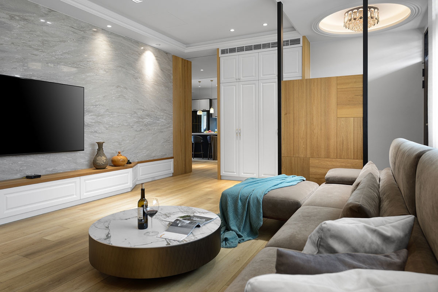 主要選材:大理石、天然木皮、鍍鈦件、烤漆鐵件、特殊塗料、乳膠漆、大板磚、SPC木地板