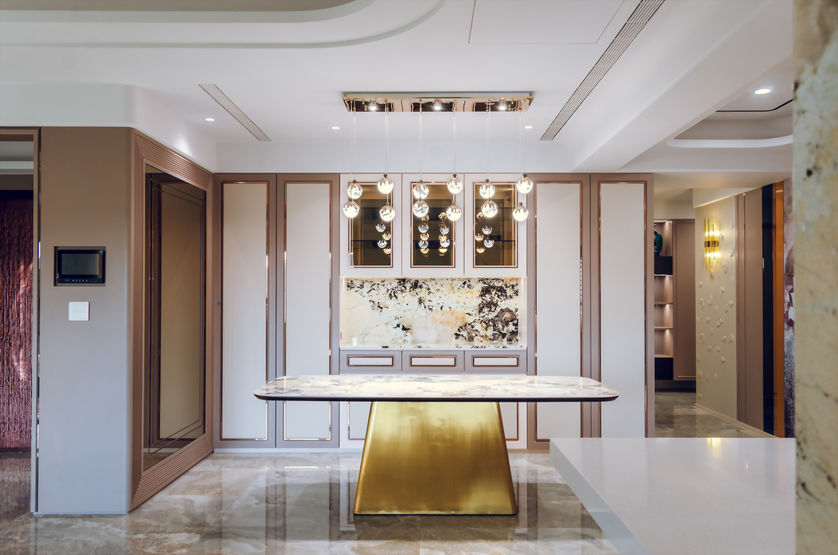 乳漆膠和噴漆使得整體空間充滿了現代感,而特殊造型板和鈦金則為空間增添了輕奢的氛圍。