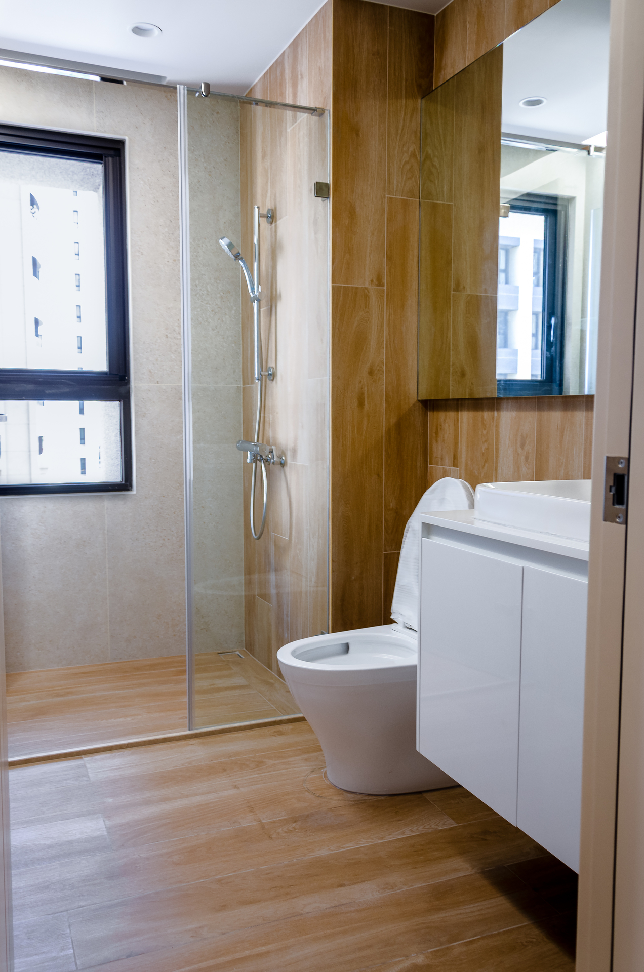 浴室門也額外結合隔音棉,創造安靜淋浴空間。