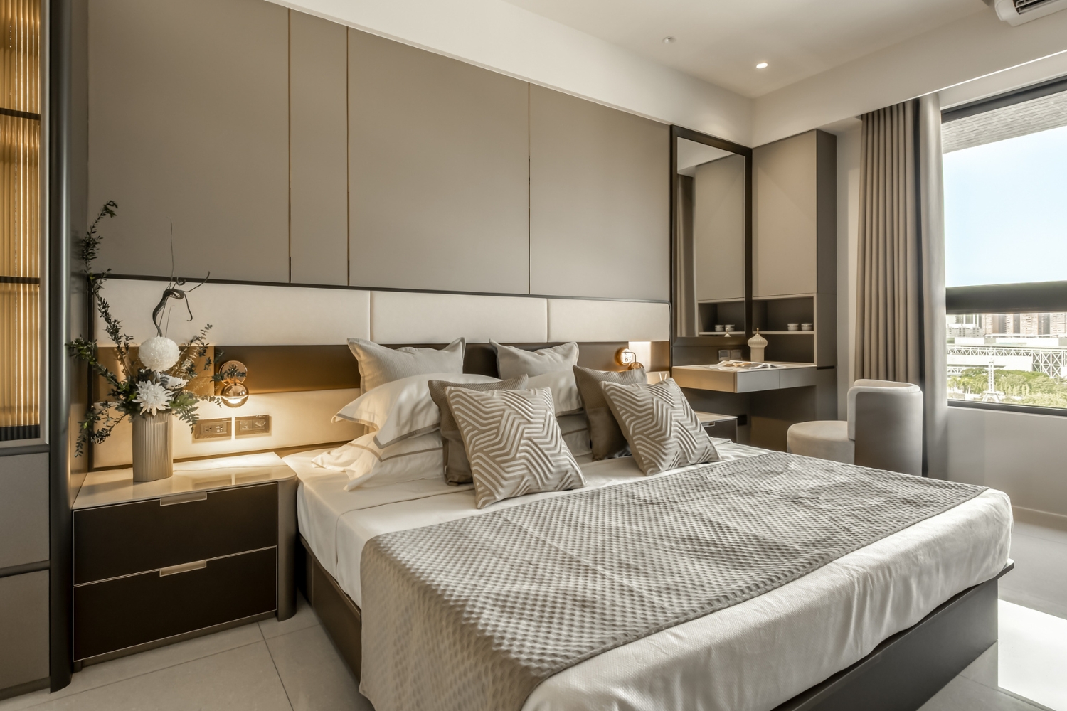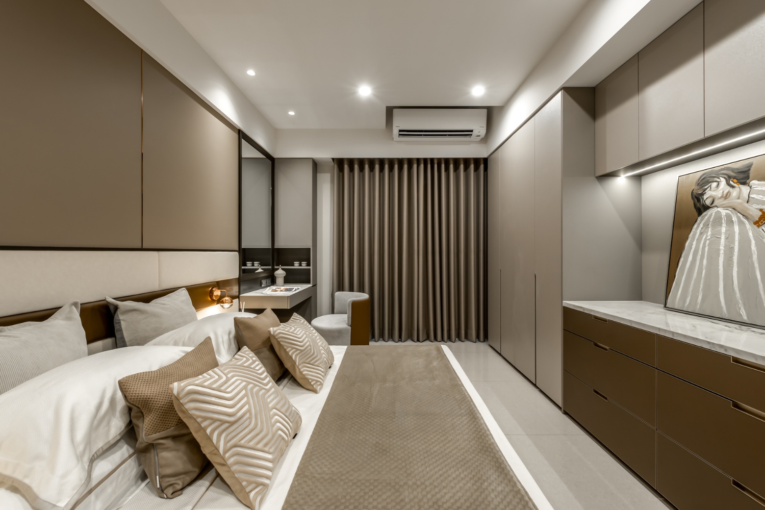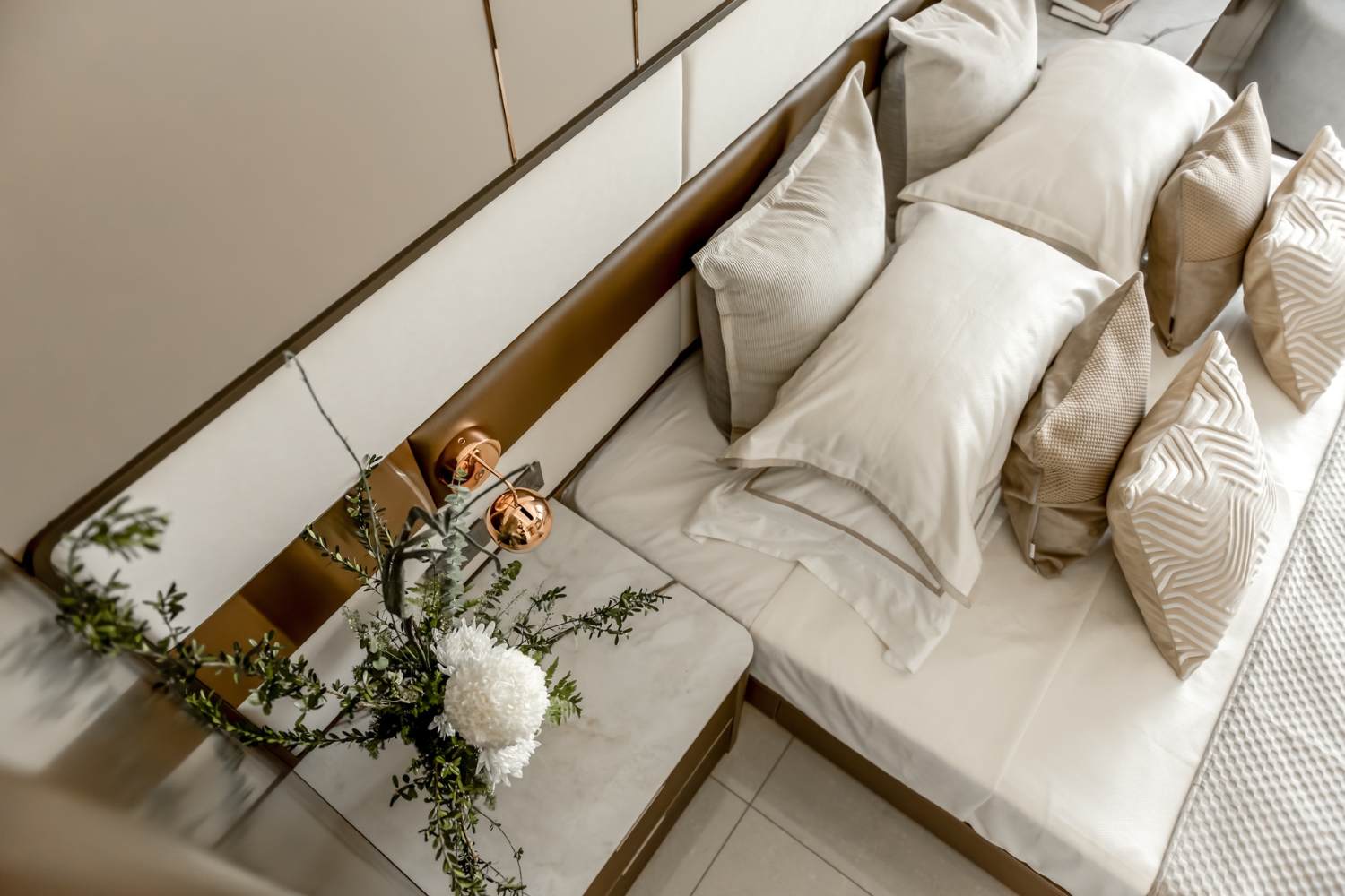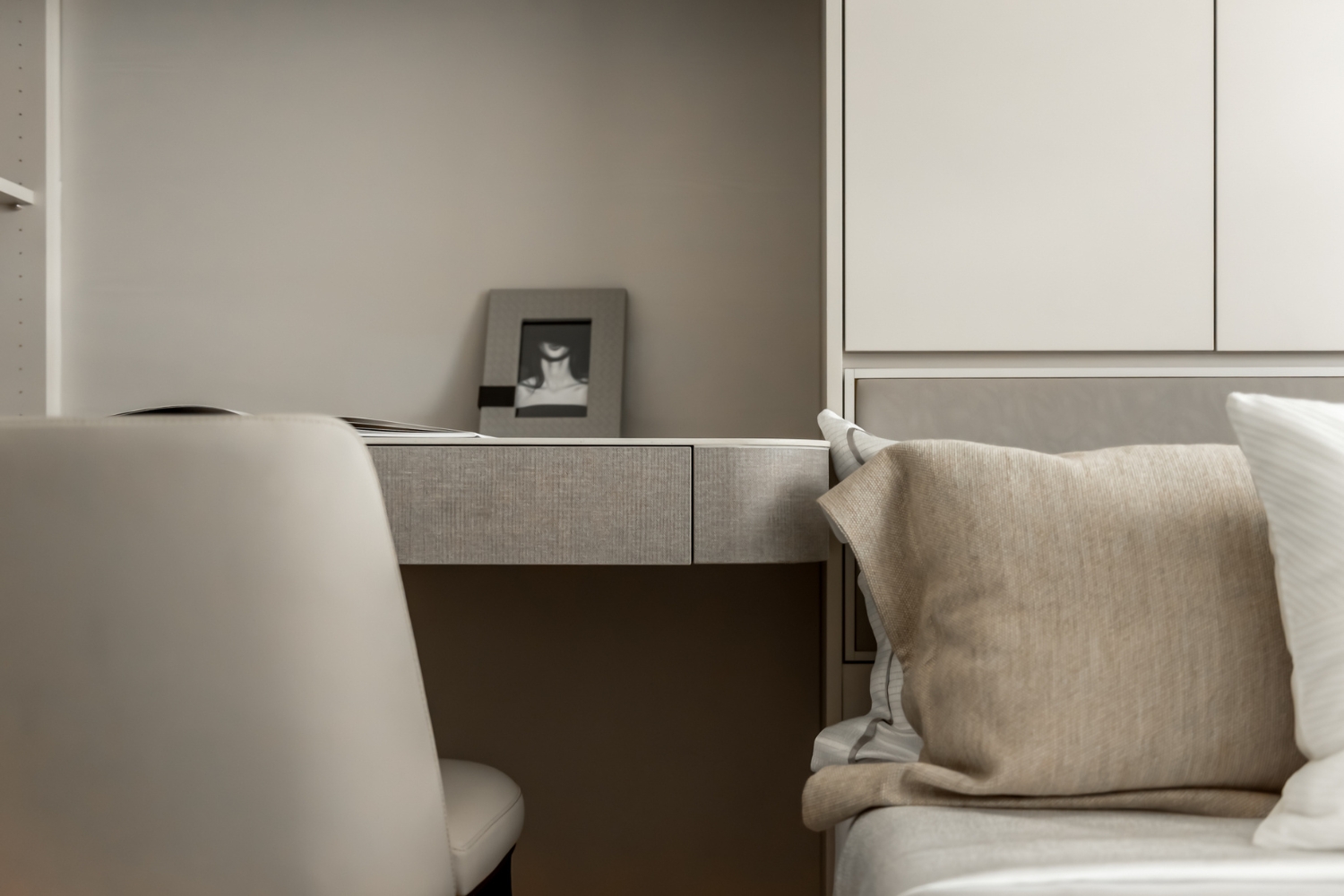 相較於其它空間,主臥室的全面「輕奢升級感」,就可以看出屋主對於這處休閒空間有多麼重視和依賴。