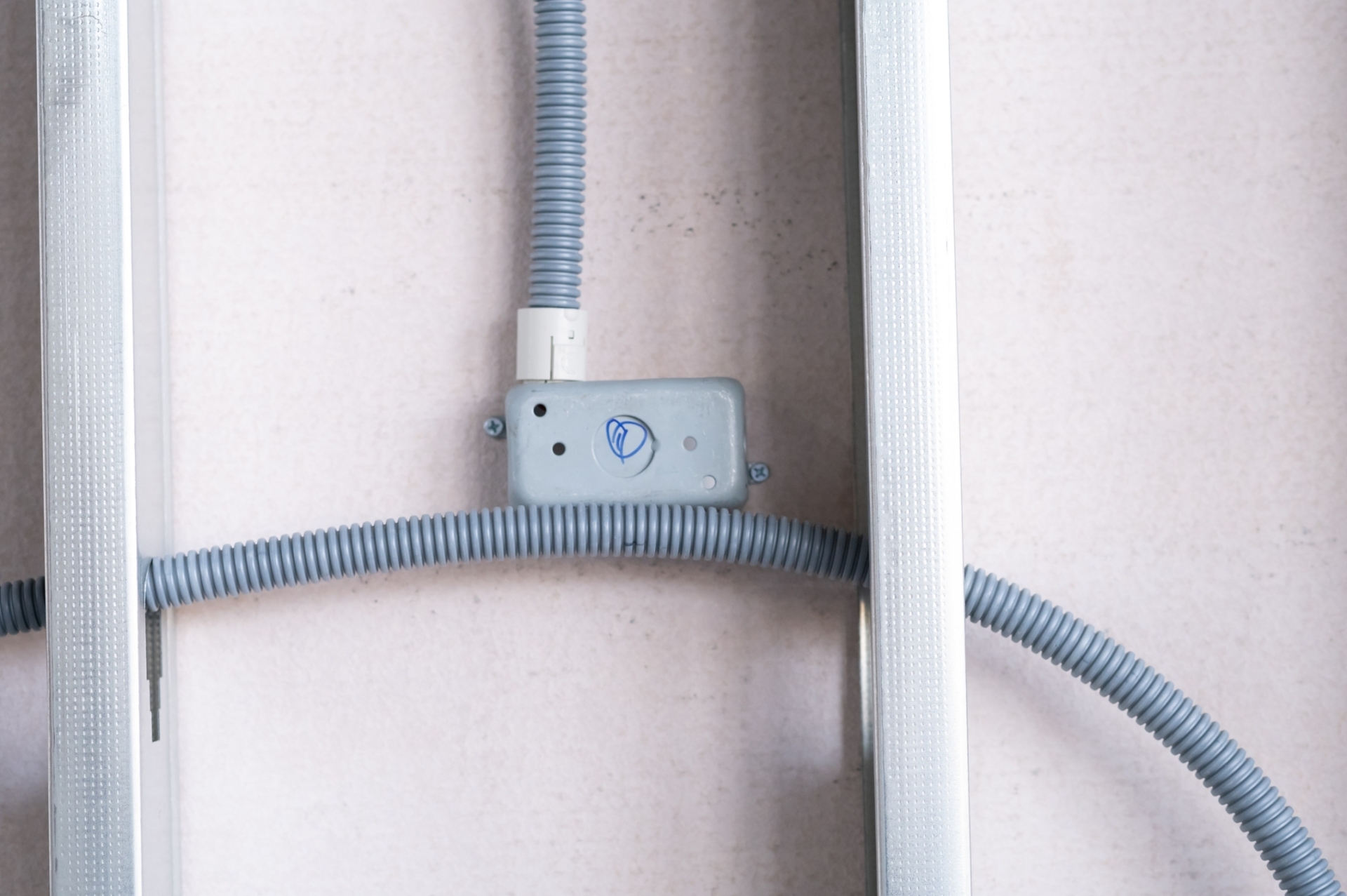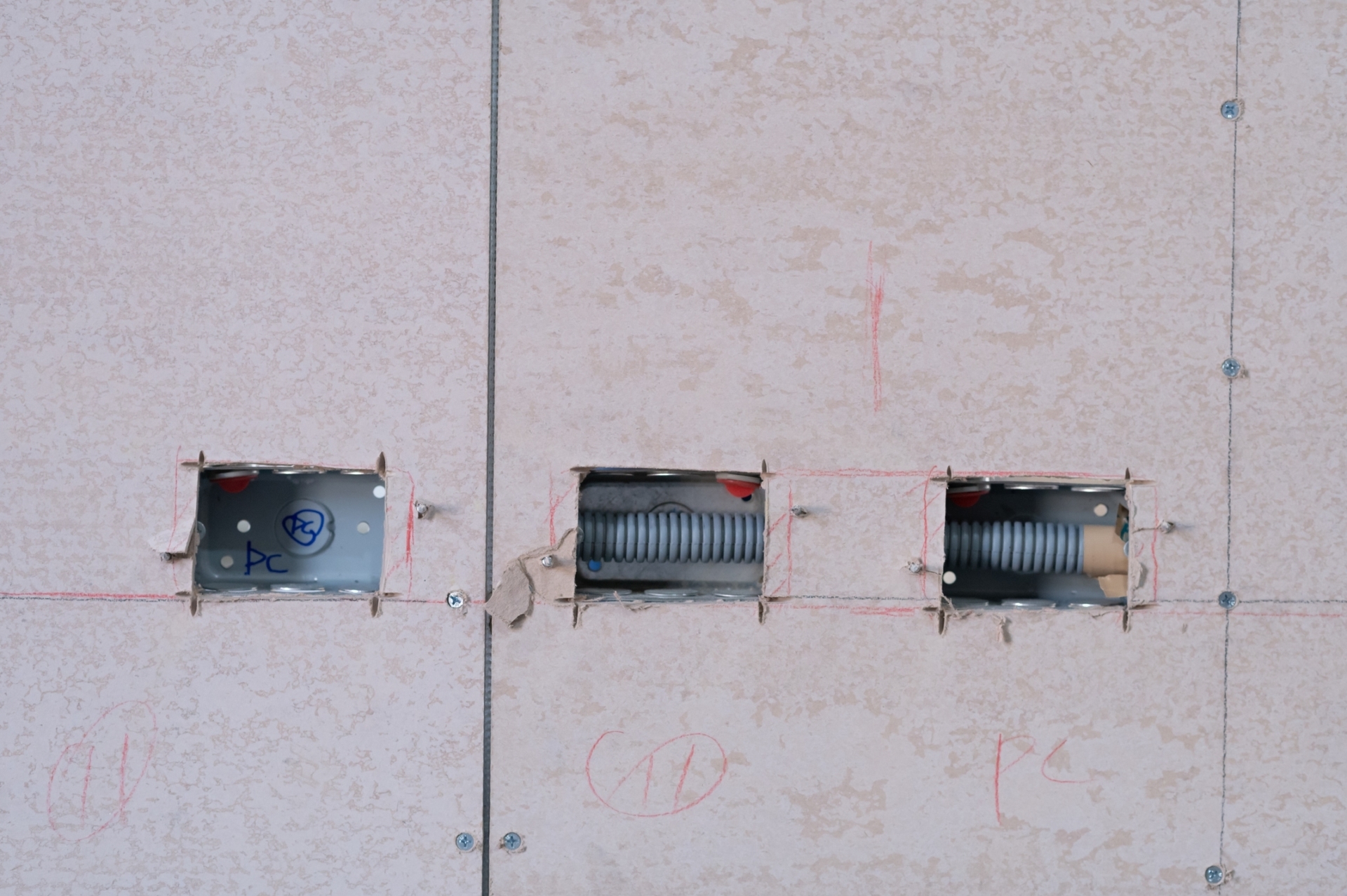 隔間裡還有很重要的一道程序,那就是確認配管及插座位置!在灌漿之前,必須都先確認好裡面的管線到位,插頭安裝位置正確,否則一旦進行灌漿,錯誤就已經無法挽回了。結果可能就是再花一次費用,再打牆、改位,傷時又傷荷包,得不償失。