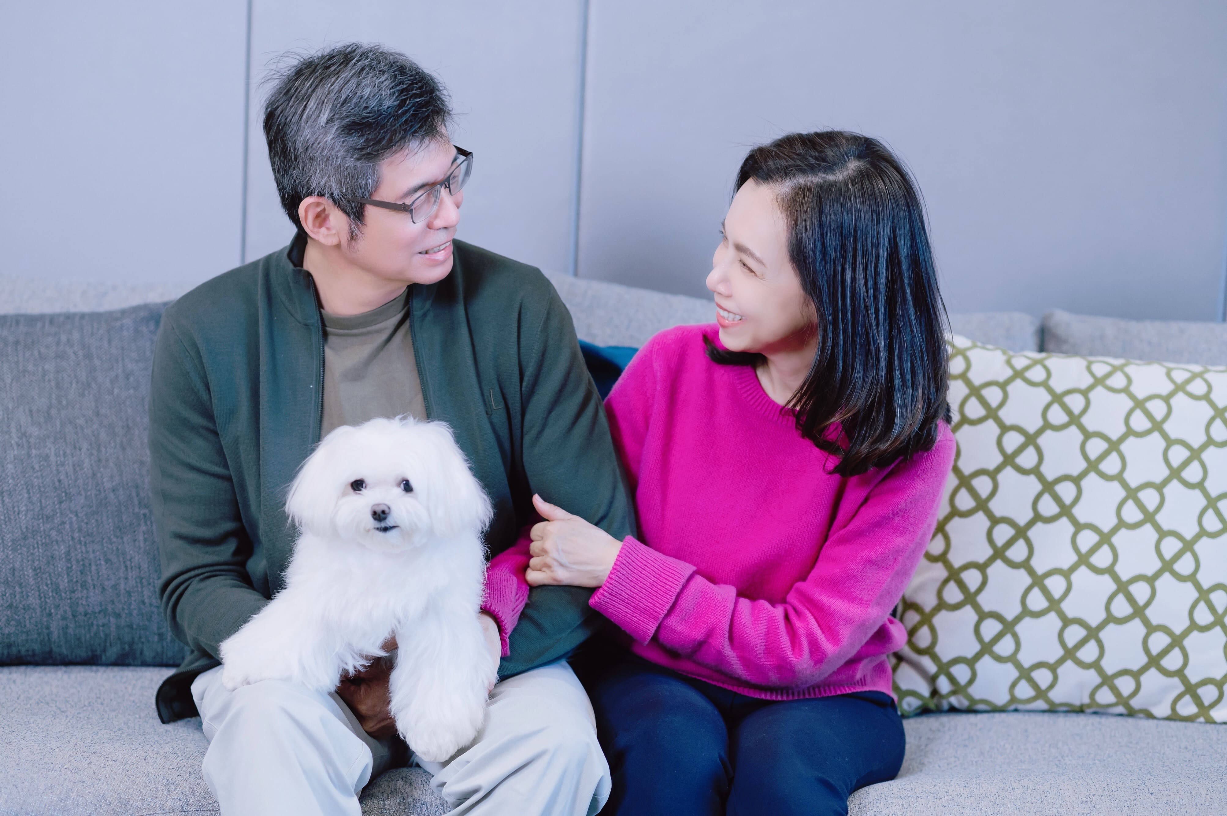 「客廳與餐廳反而是我們一天待的時間最多的地方,也是我和先生最喜歡的空間。當初設計不管是電視牆面以及石材選擇的後面許多細節,真的都讓我們非常滿意。我先生下班回來後,他都很喜歡在這個空間放鬆,聽聽音樂、看看電影……當他在餐桌處理事情的時候,我也可以陪他聊聊天啊。加上窗戶外面視野這麼好,在這裡真的很棒。」