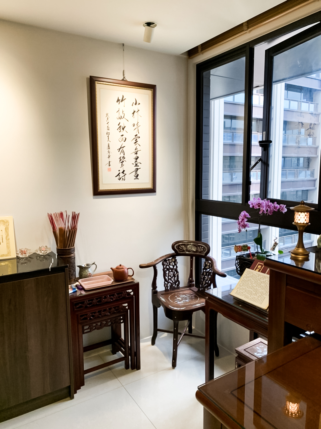 「其實這一年多佛堂使用下來,覺得空間稍嫌小了一點。但我先生滿常在這裡唸經,也算是一個淨心的好地方。」