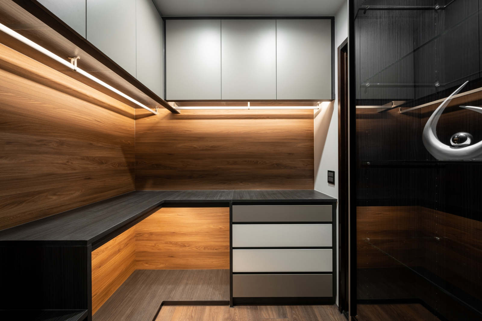 而更衣室的存在不僅止於潮流或為了好看而設計,更重要的是:它讓屋主擁有很好的陳列展示、收納衣物、配件、以及鞋和精品包的空間,在出門前,能夠把自己打理到位,成為今天城市中最亮的風景。