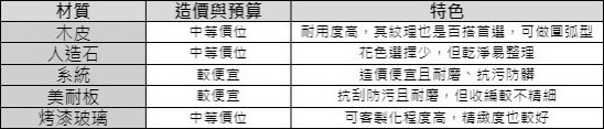 系統化妝桌台面,除了花色選擇少以及收邊工藝有時不甚完美之外。其造價相對便宜且質感佳,俱備耐磨、抗污以及防髒的特性,可說是CP值相當高的選擇,是許多客戶心目中的材質首選。