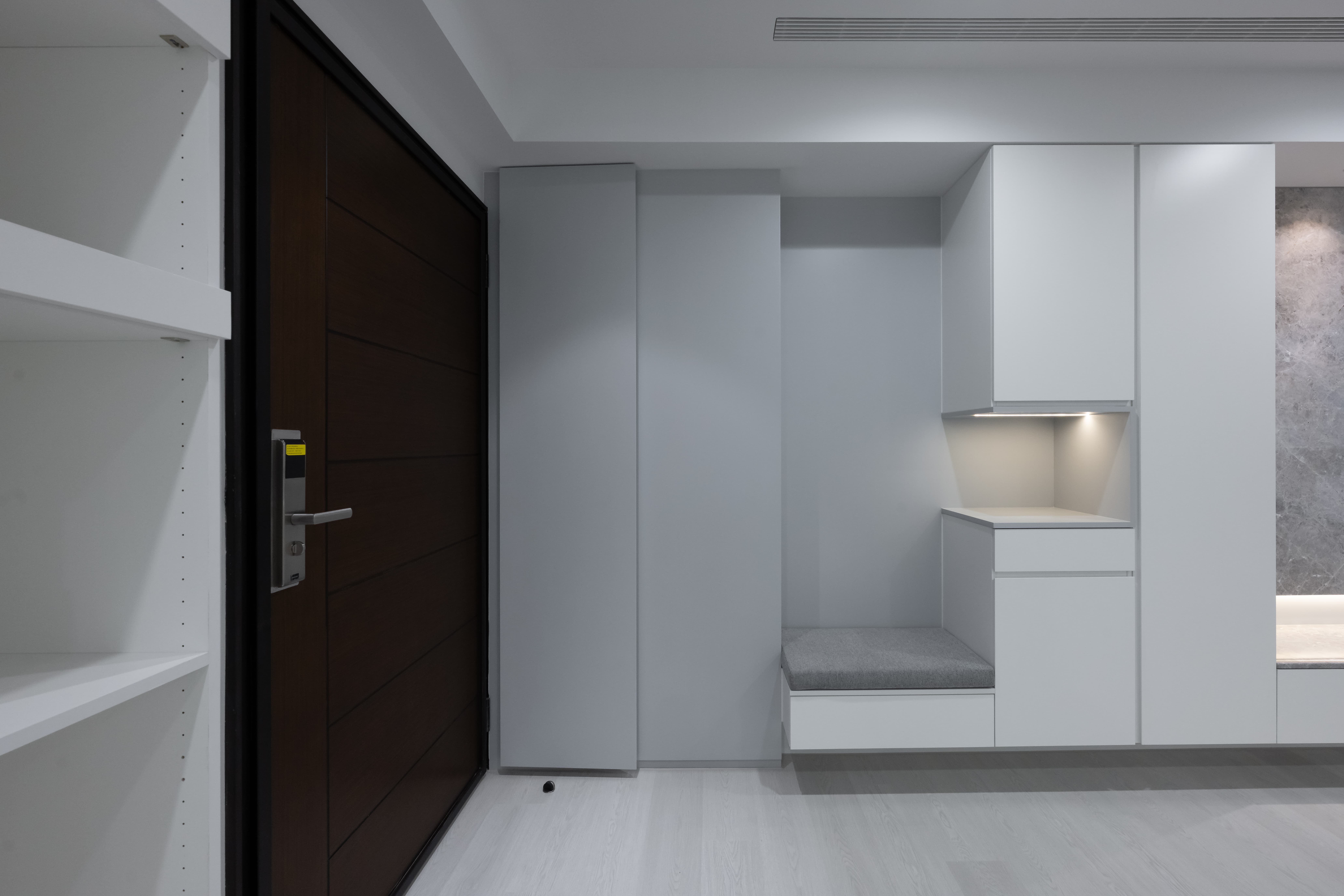 ⾨⾯最重要的就是避免凌亂,在⽞關空間可以多加利⽤「系統櫃設計」來放置外出⾐物、鞋⼦、⾬傘以及其它雜物。甚⾄也有許多屋主會將如充電式吸塵 器、打掃器具收納在⽞關處。