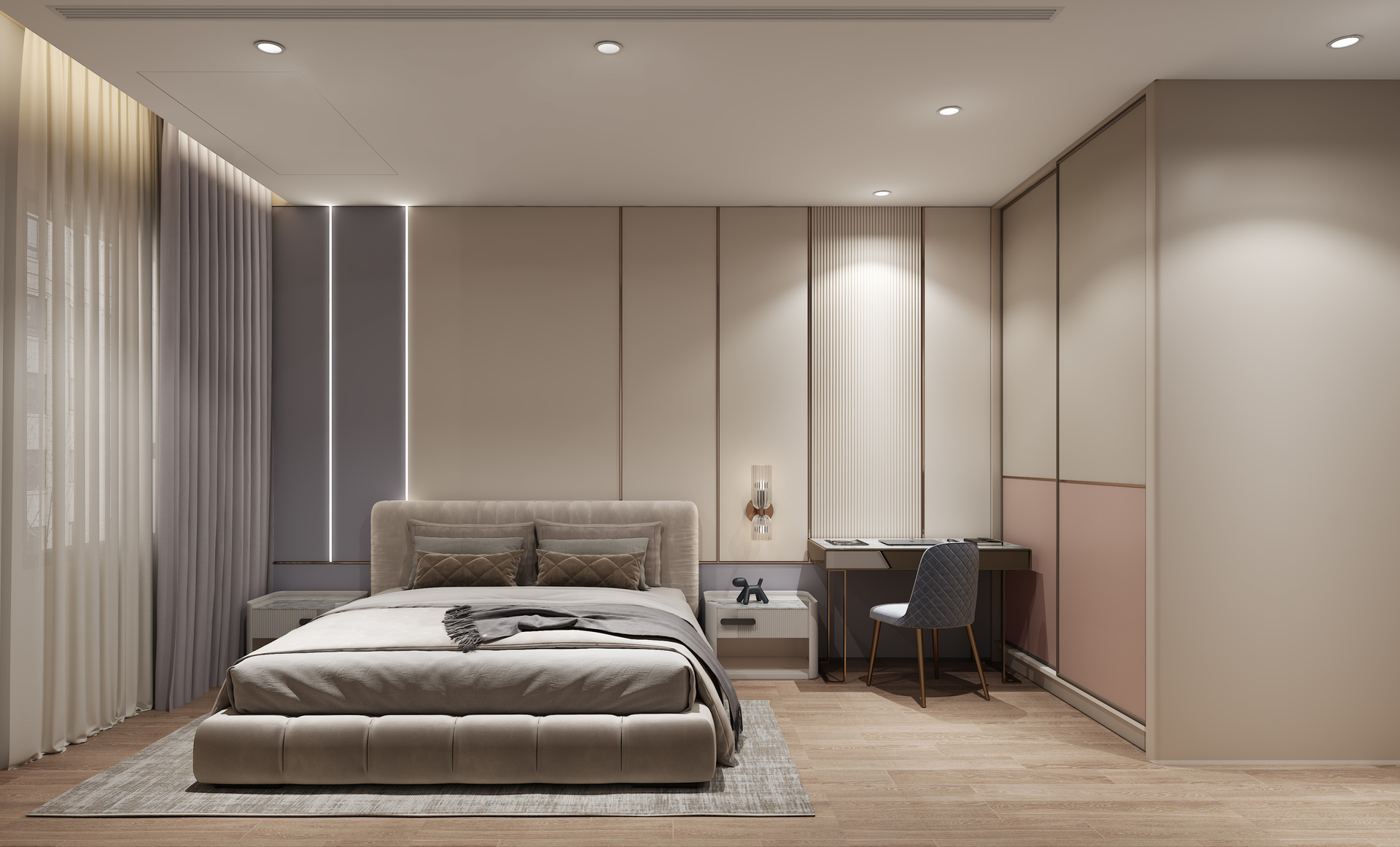 臥室中,⽊紋磚可以營造出溫馨和舒適的感覺,同時符合⼈們對於安全性和易於清潔的需求;若想為浴室營造⽊屋的度假感,在牆⾯、地壁全貼⽊紋磚效果也很好,並也同時兼具耐磨⽌滑、耐刷的特性。