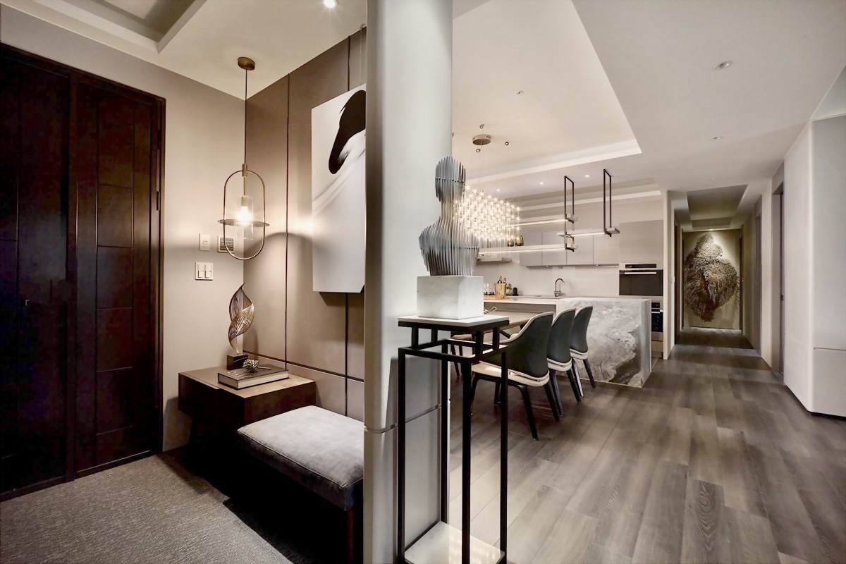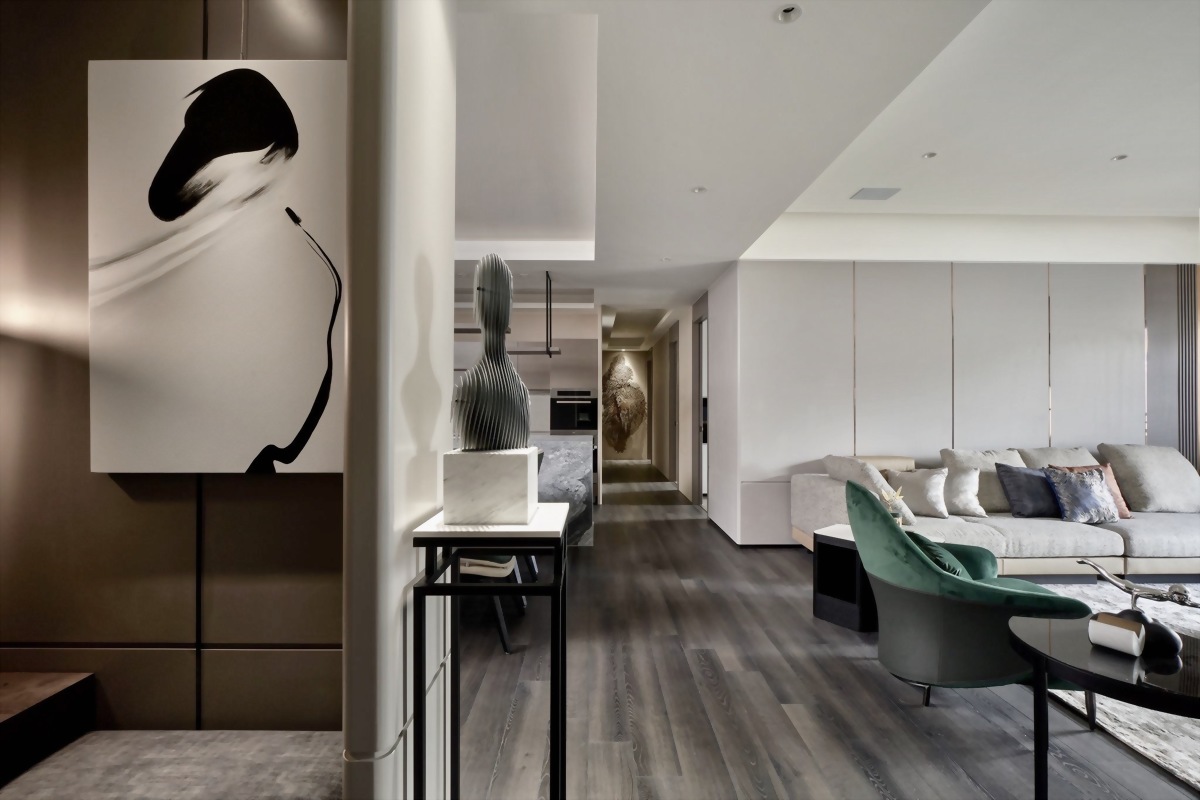 在整體住家設計中,玄關設計讓人一進門就有溫暖的感受,藝術掛畫與燈飾、擺設、為玄關印象加分,也讓人回到家即有放鬆的感受。