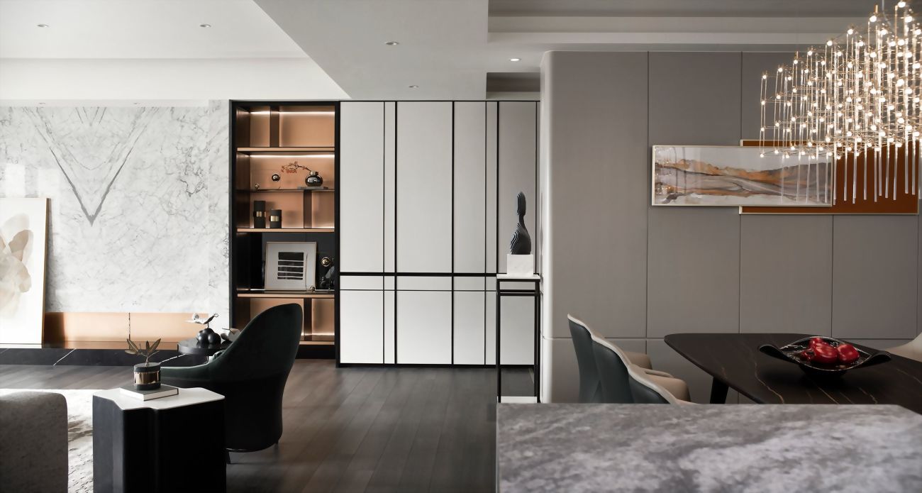 流動的空間氛圍讓空間更有層次、豐富走到底牆面藝術裝飾,提升空間裡的帝王氣勢之氛圍。