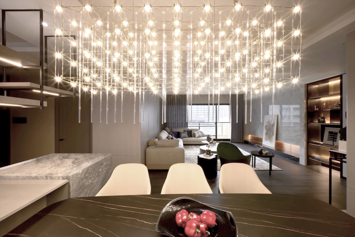 帶有一點奢華感的燈飾,也提升空間的質感,創造整體空間的記憶點。