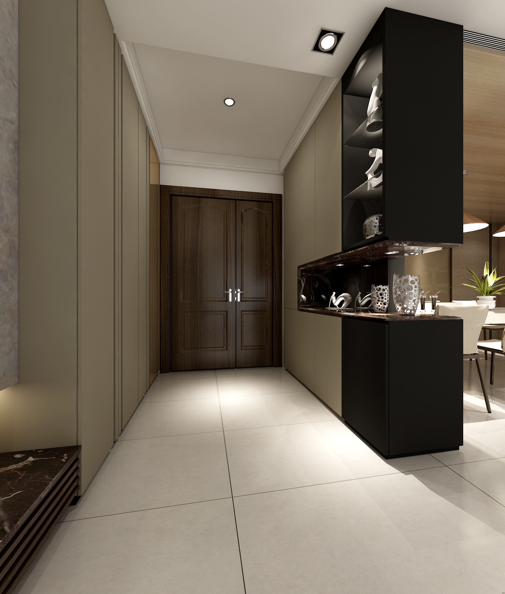 在主臥室設計部份,有一個亮點,就是房間內玄關(小玄關)的設計。