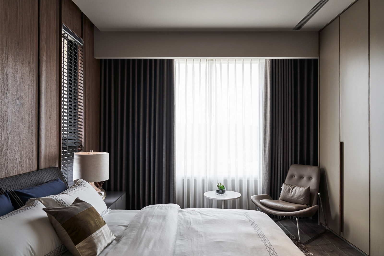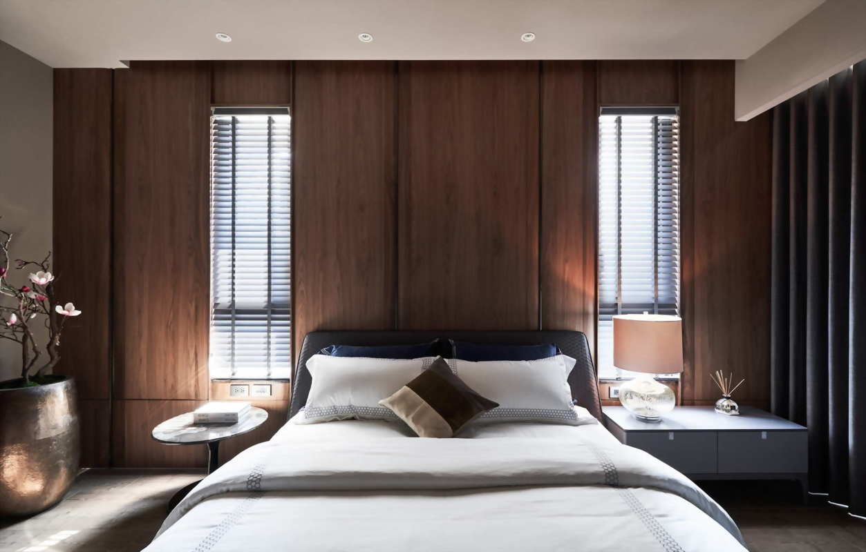 善用百葉窗的室內設計可隨意調節光線,使臥室空間設計猶如陽光的畫紙,實現光與影的跳動,整個裝潢空間設計奢美而誘人。