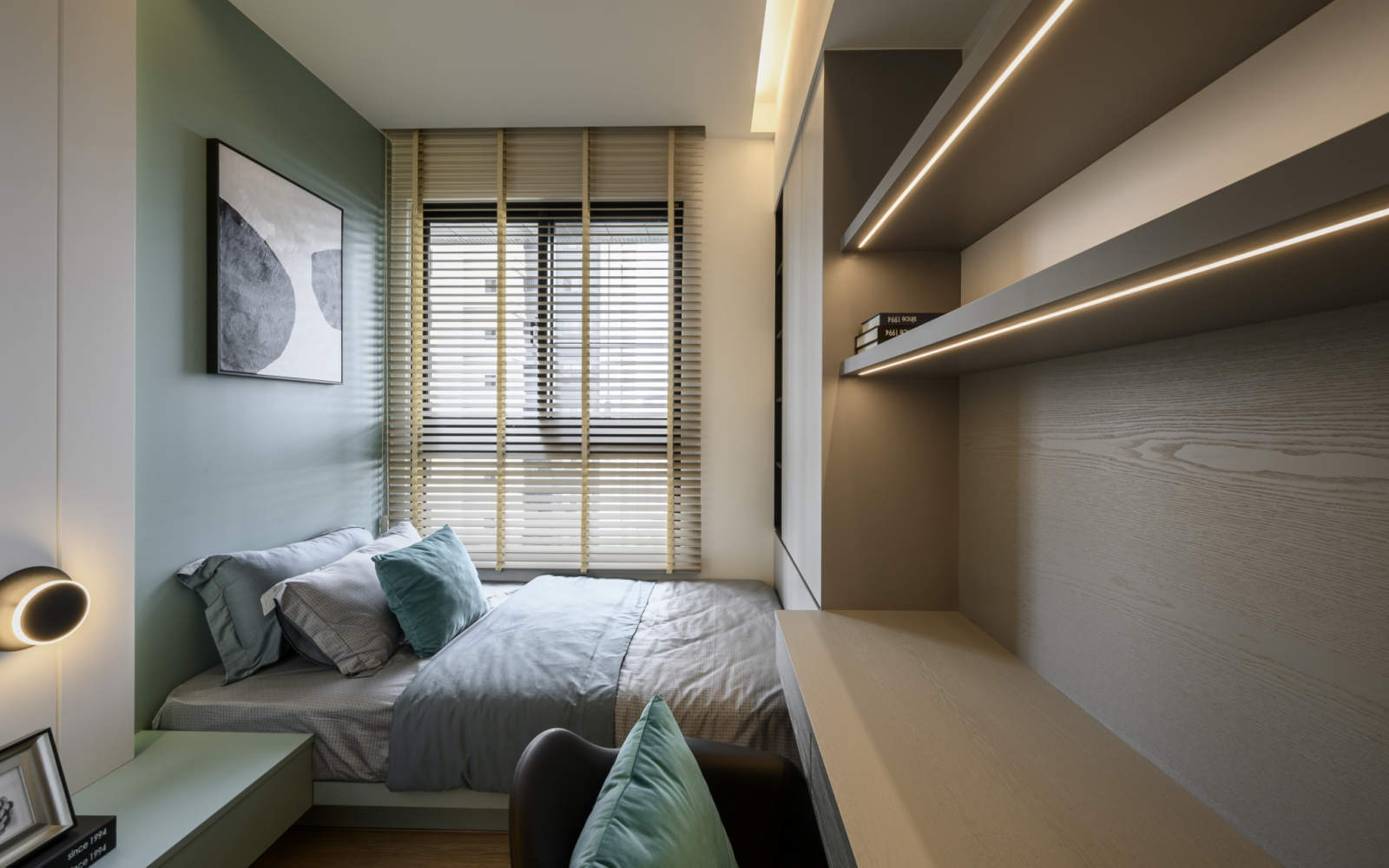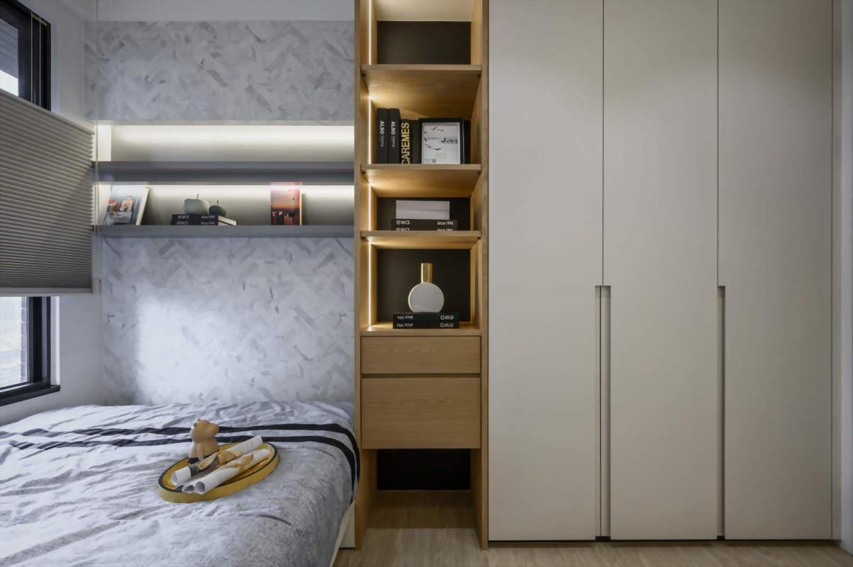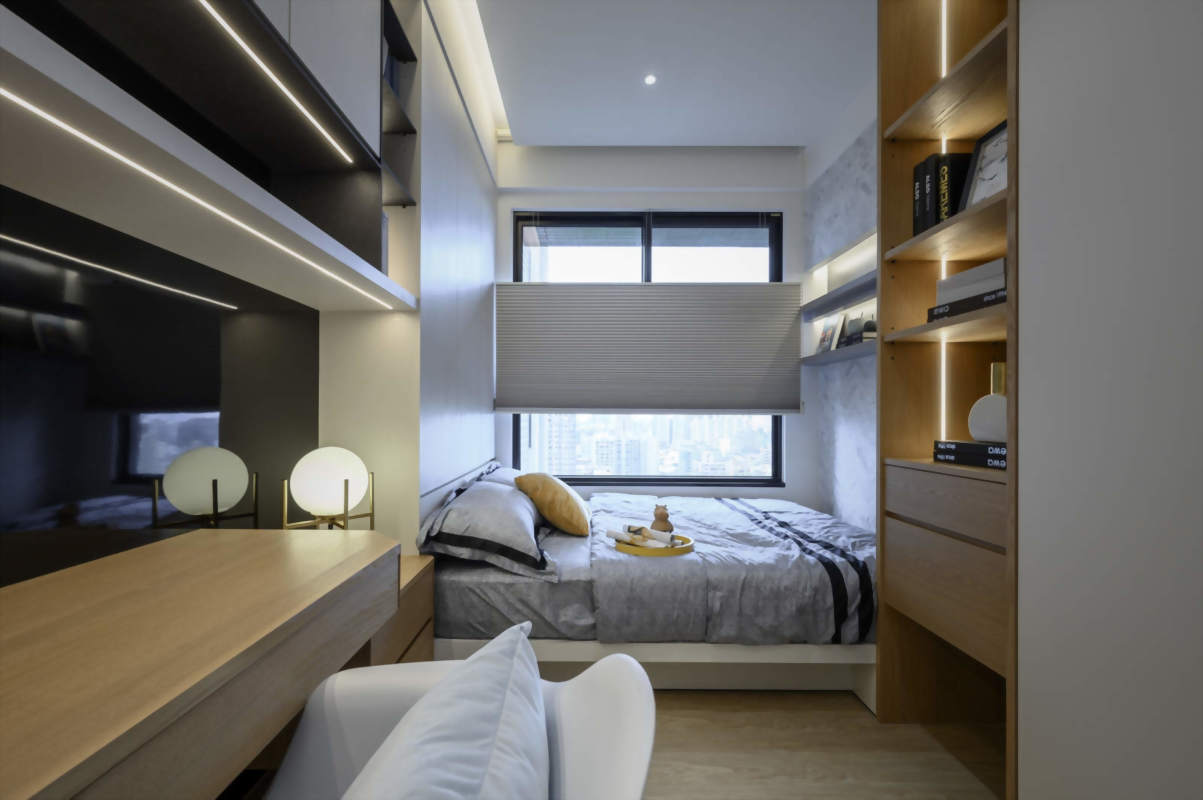 小坪數設計絕不能捨棄的就是收納空間,因此在設計這間房間時,利用室內空間設計結合系統傢具設計就變得相當重要。