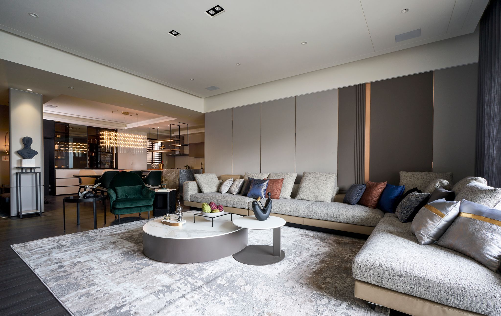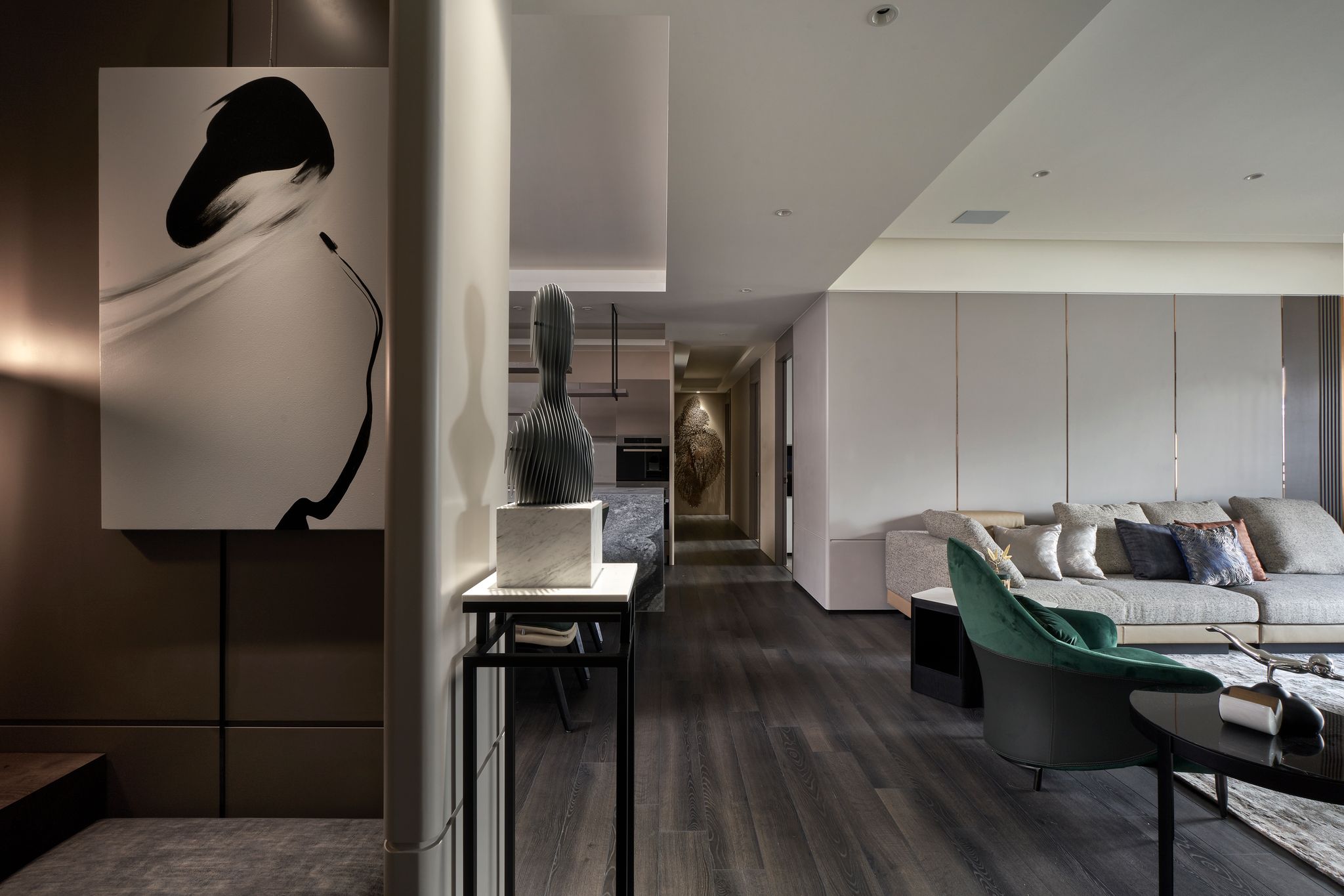 流動的空間氛圍讓空間更有層次、豐富走到底牆面藝術裝飾,提升空間裡的帝王氣勢之氛圍。