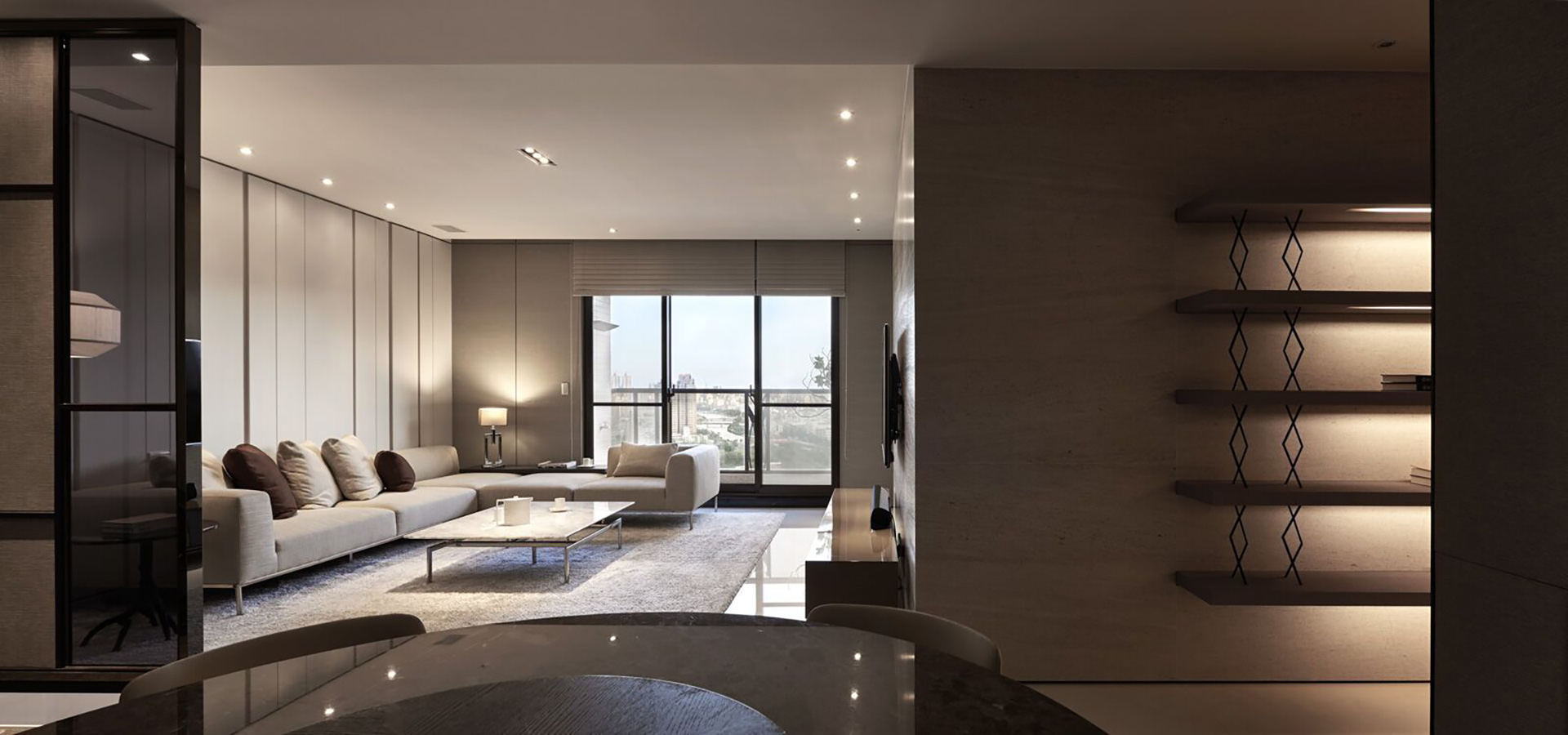 「Less is more.」生活中的許多細節有時不需要過多的包裝,回歸最簡單的裝潢風格,不給人過於繁複厚重的室內裝潢設計,簡單的大理石材裝潢風格,即可與空間設計對話,細膩的紋理,溫潤的燈光,以色彩來調和住家設計的環境氣氛及親切感,簡單的空間設計,讓室內設計在視覺上有一種開闊的安定感。