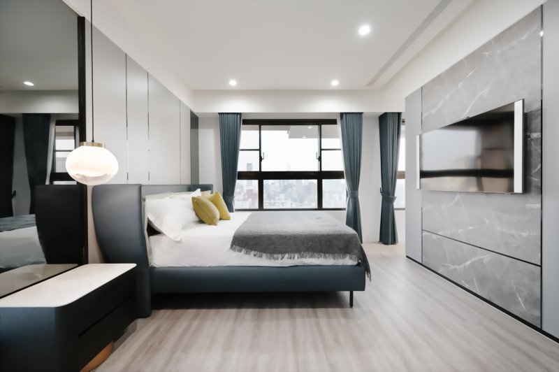 男主臥室,以冷色系為主調,打造不凡的現代時尚感。
