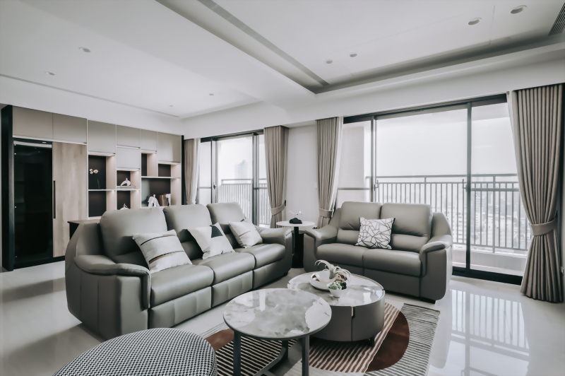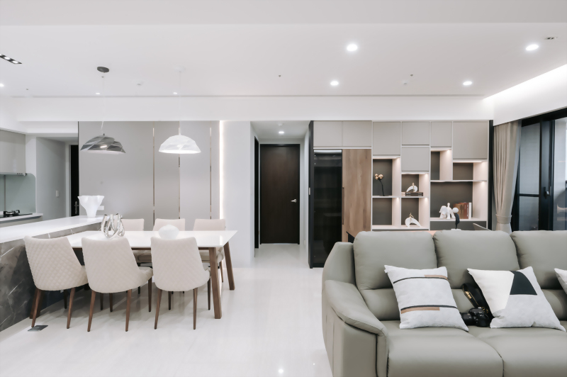 充滿現代簡約風格的客廳設計,由俐落線條點綴的挑高無壓迫天花板,也是一大亮點。