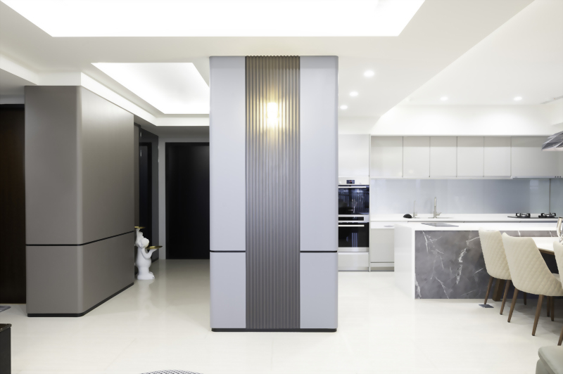 拉長中島後,意想不到廚房變得更顯氣派,搭配壁板設計,讓空間表現更開闊、更溫柔了。