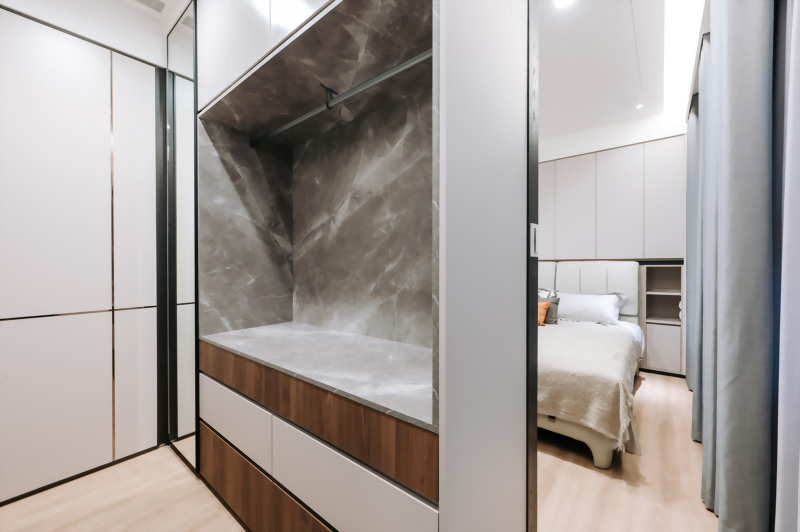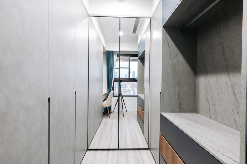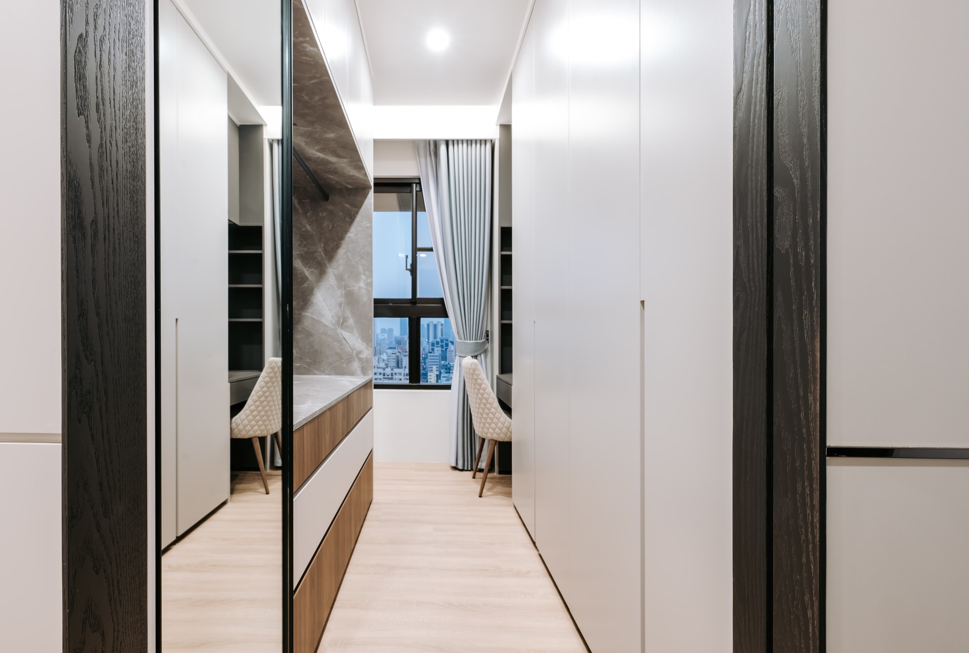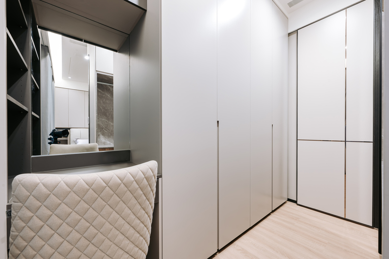 除了休息空間外,也設計出了女主人專屬的更衣室設計,將自己的衣著及精品品味一一收納,將機能全然客製,打造細心貼心的所有細節,形成自己獨一無二的時尚空間。