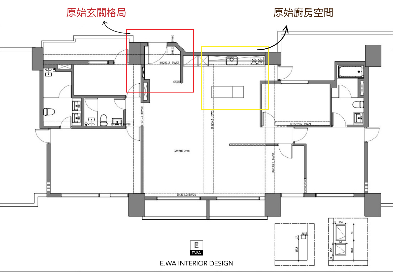 「原本不存在的玄關設計格局,是屋主最擔心的部份。完成後,屋主都滿意到覺得我們變了一場魔術。」