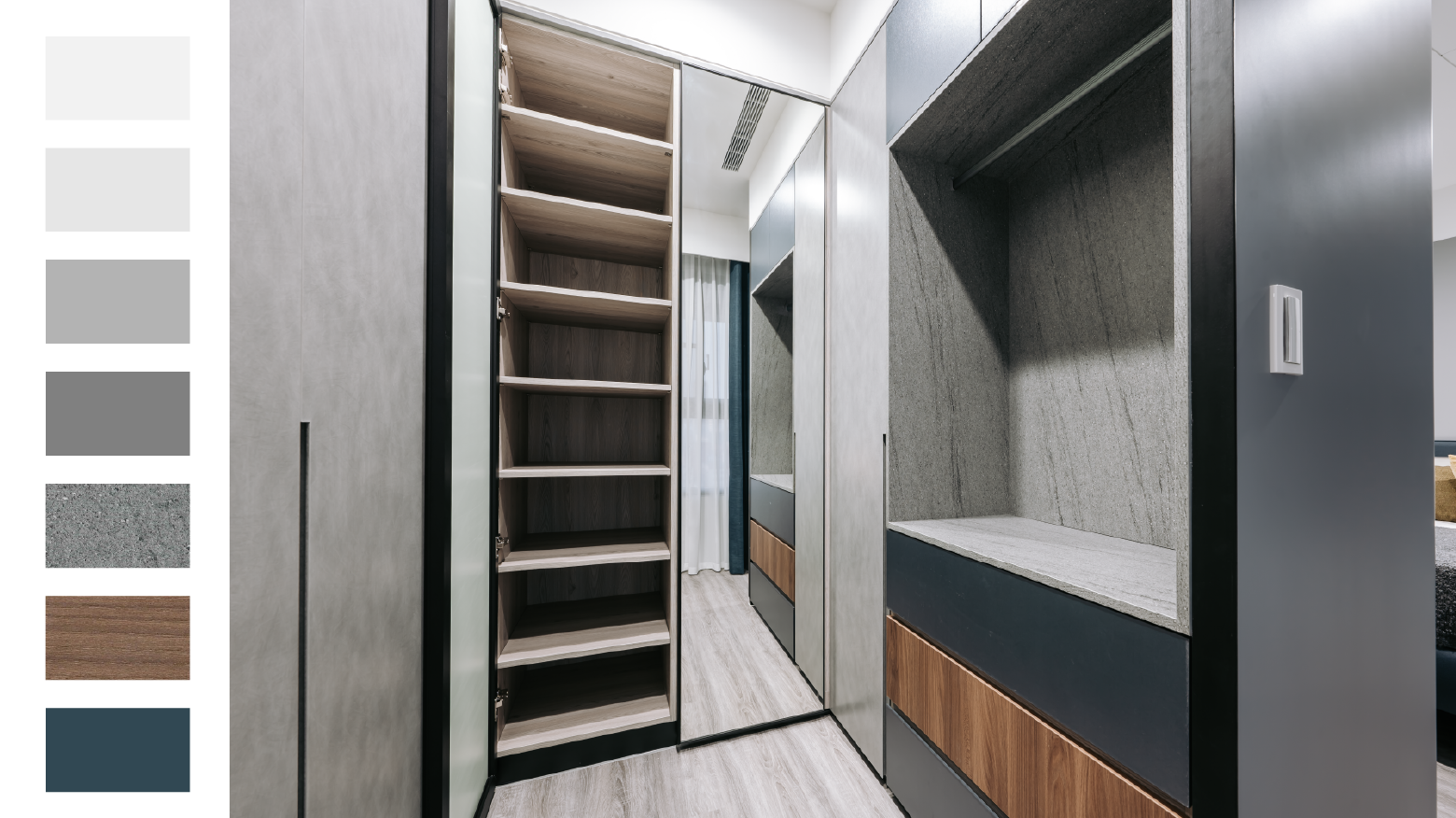 在更衣間的部份,屋主非常重視收納功能,而系統櫃在此處的靈活運用,更是讓更衣間有了新氣象。