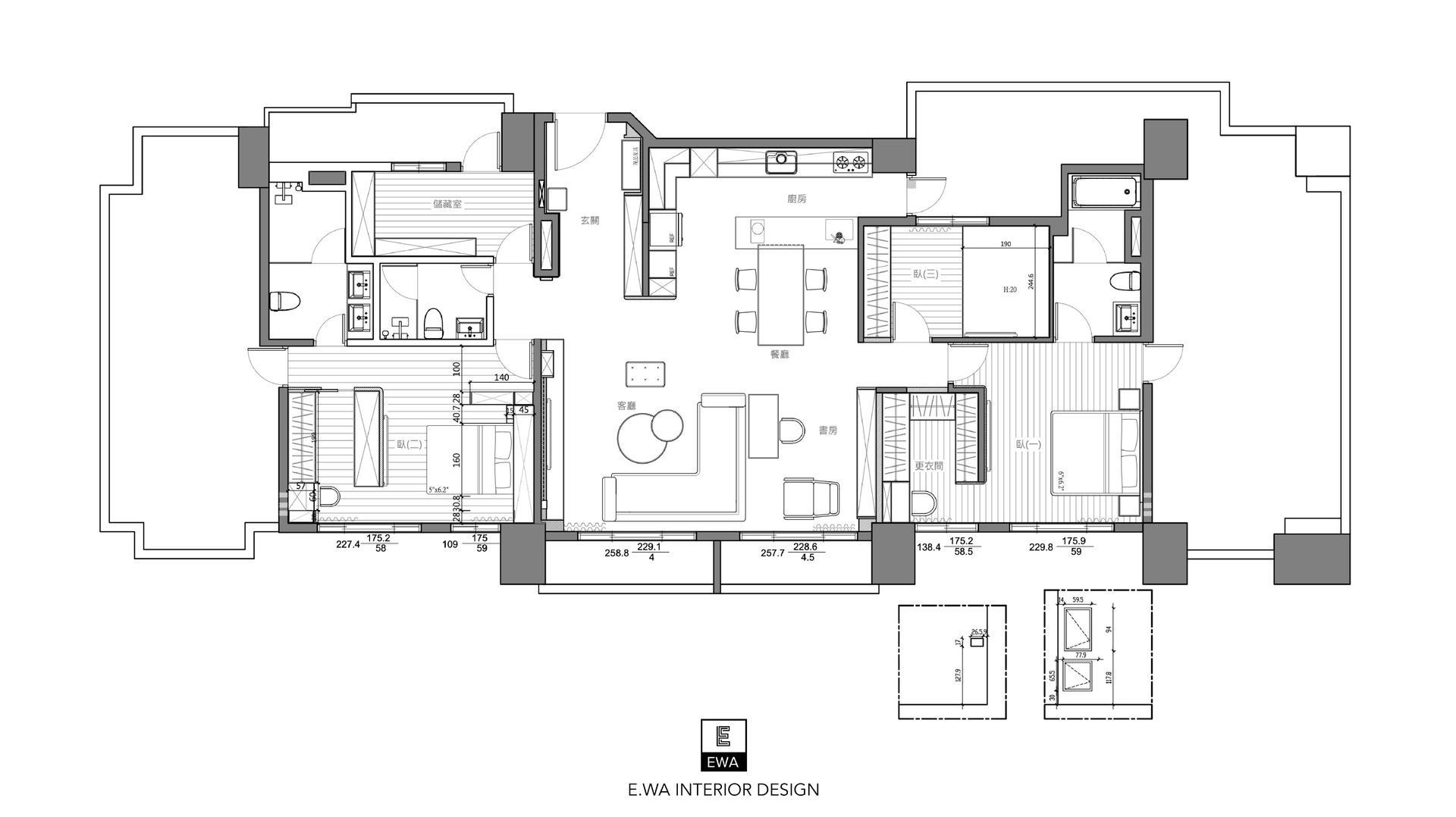 更重要的是選用全系統櫃的材料完成,兼顧預算及美觀,同時達成兩個設計:「美觀、實用」的重要目標。