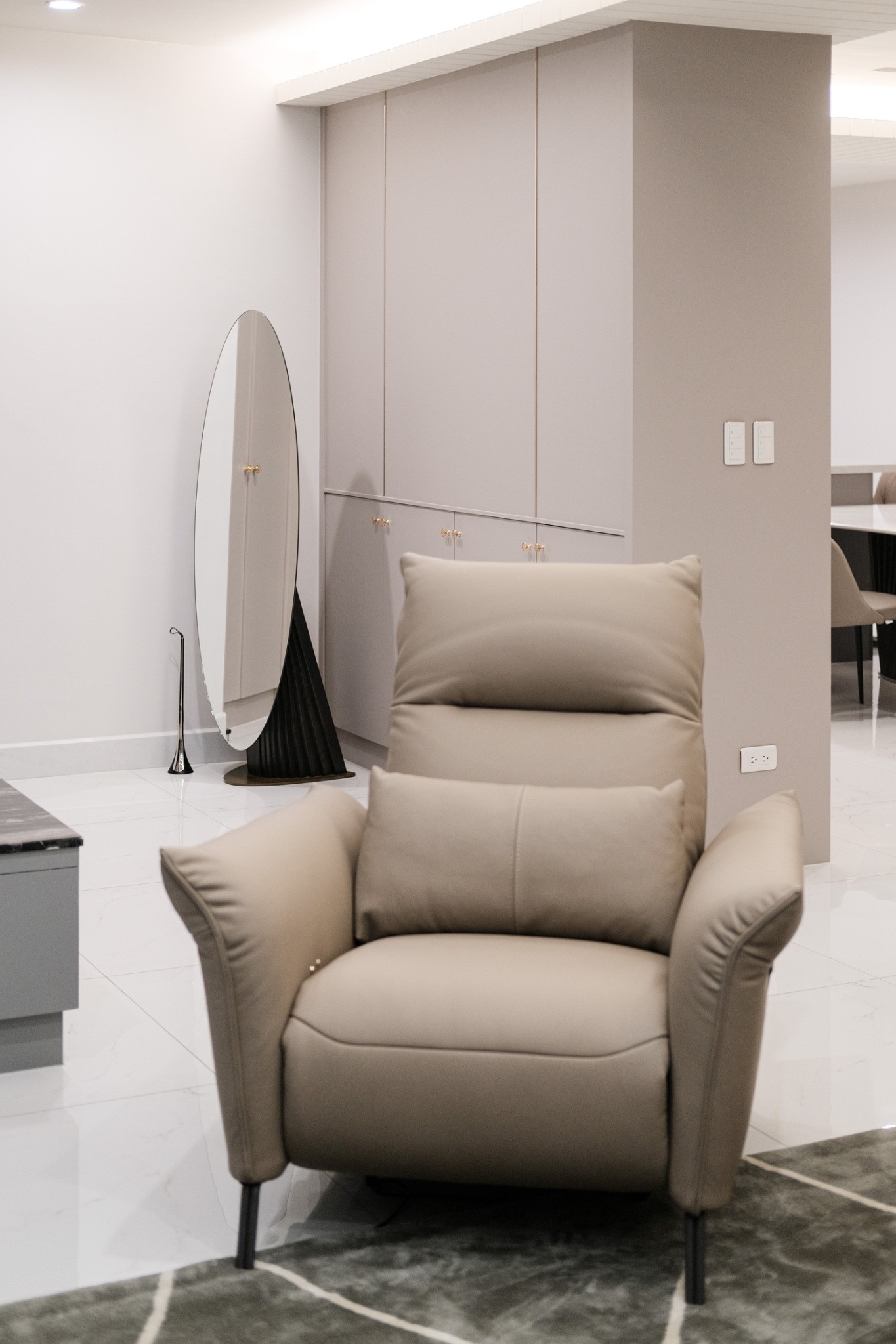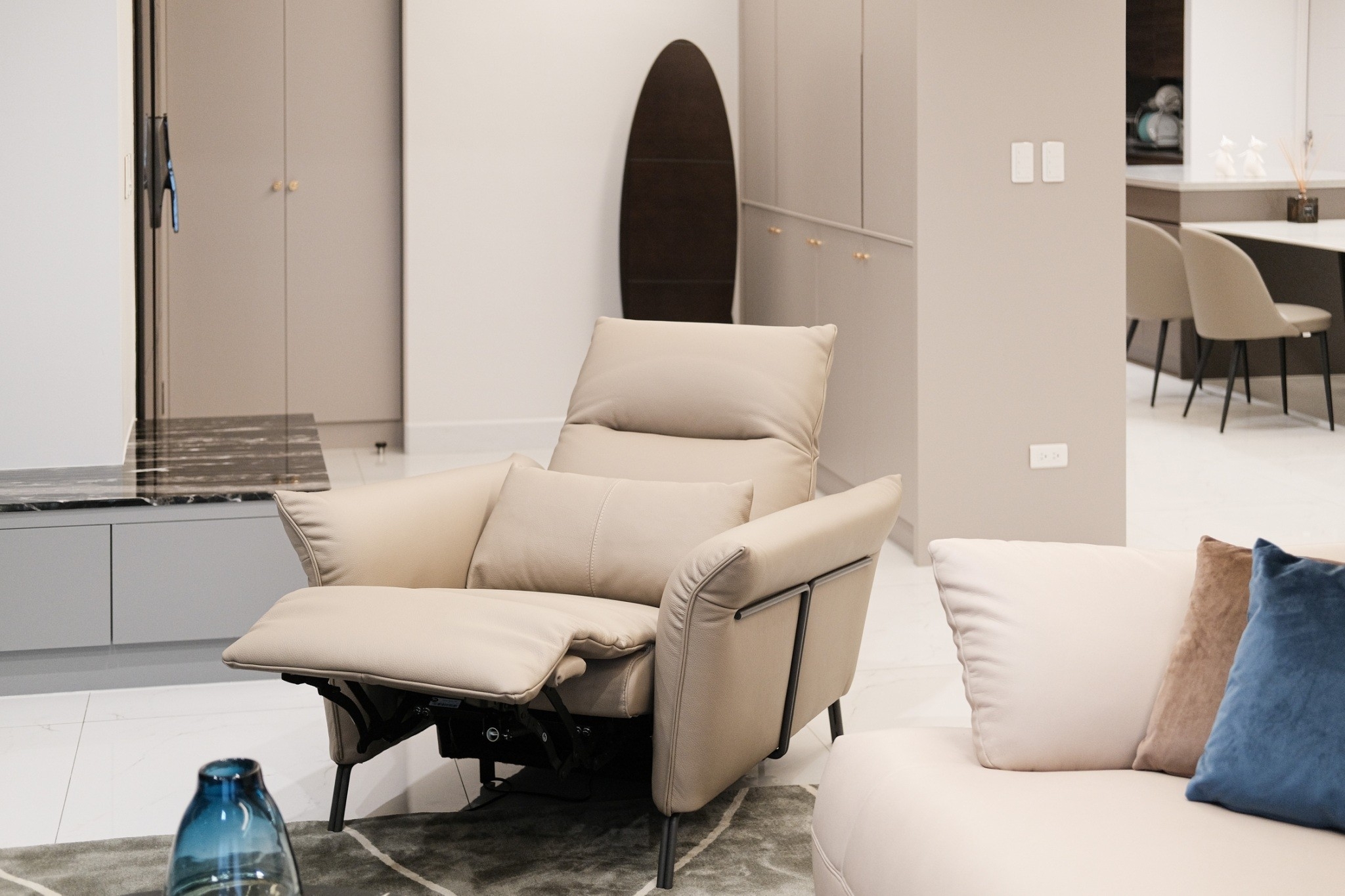 另外再適時輔以軟裝設計,如加入色系溫和低調的窗簾,馬上為空間帶來了畫龍點睛的效果。