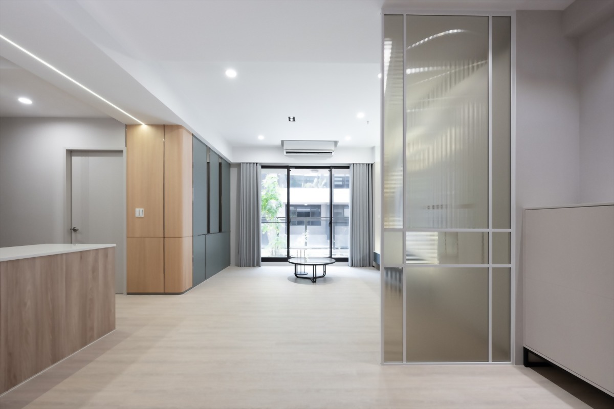 為了讓空間具有一致性,壁面也重新改色與玻璃搭配。