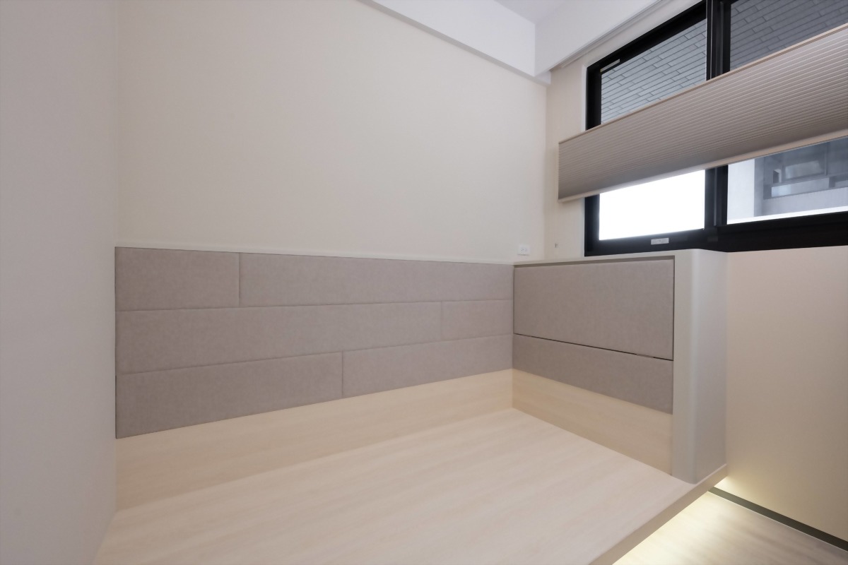 要讓長輩住的舒適,床頭設計也是重點,必須講究包覆性,將床頭與側邊包覆繃布,打造柔軟感受。