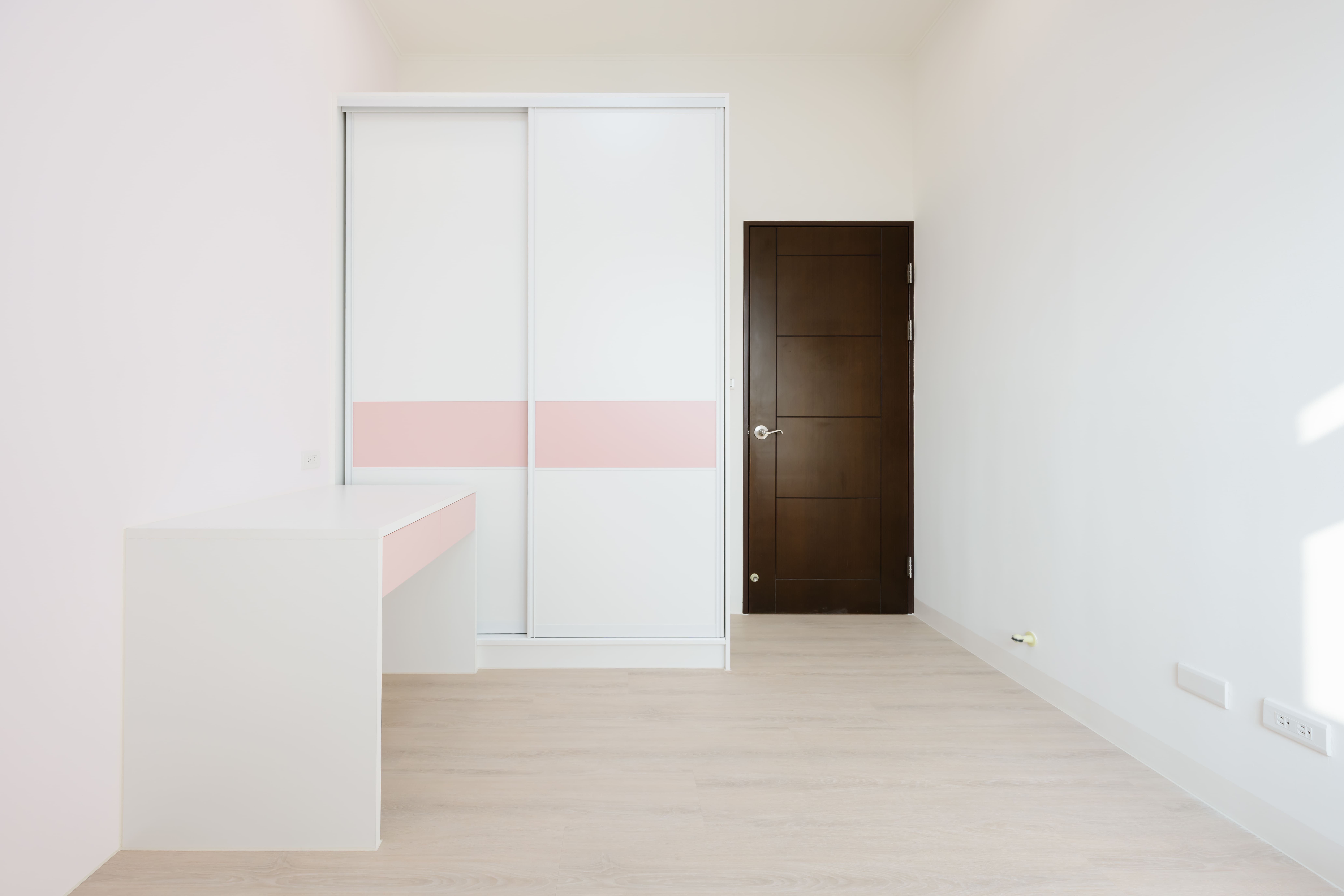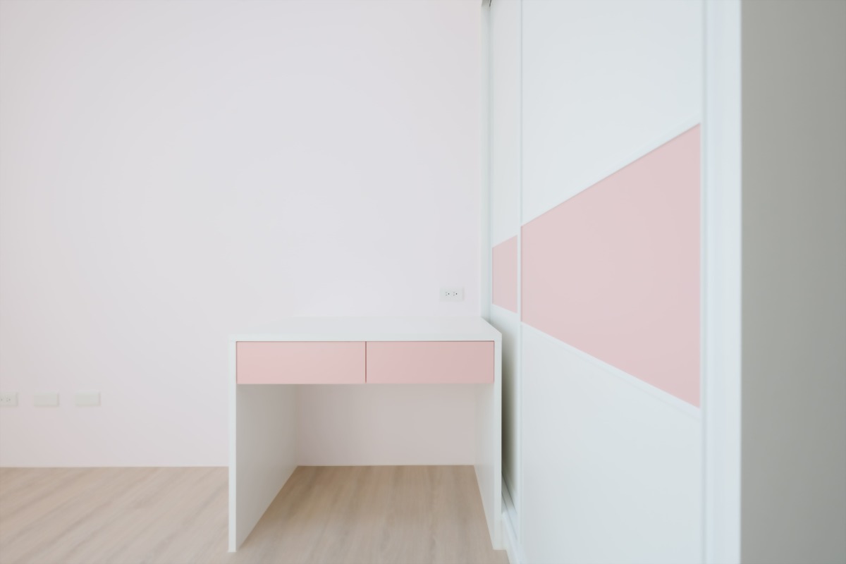 所以在設計師的建議下,將書房設計及臥室設計結合,長型的桌面及桌面下收納空間運用,不僅沒壓縮到臥室休息空間,也能將書房設計收納做妥善的運用。
