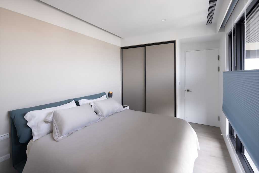 在主臥室中,床的方位直接面向極佳的大面窗景,每天早晨起床的第一件事,就是享受灑落陽光的溫暖氣息。