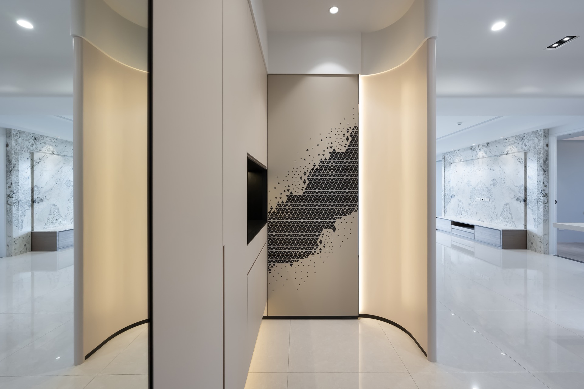 同時也在玄關處配置端景几,讓屋主可以在入門處放置收藏品或花束,讓空間更顯高端時尚。