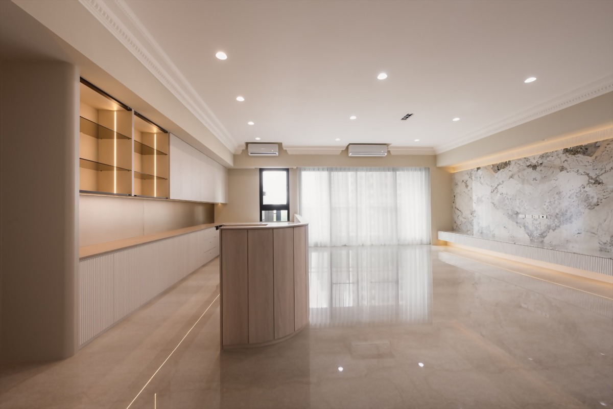 主要建材: 鐵件、系統板材、石材、噴漆、木皮、人造石、超耐磨木地板、玻璃、系統家具、乳膠漆