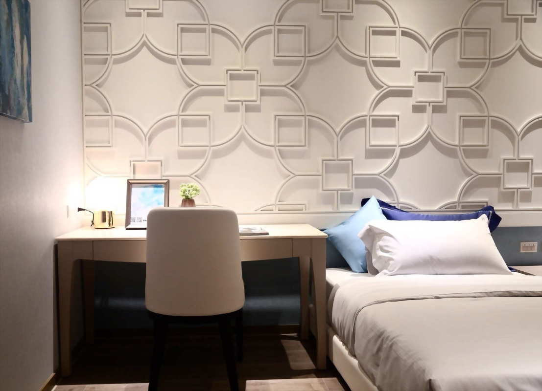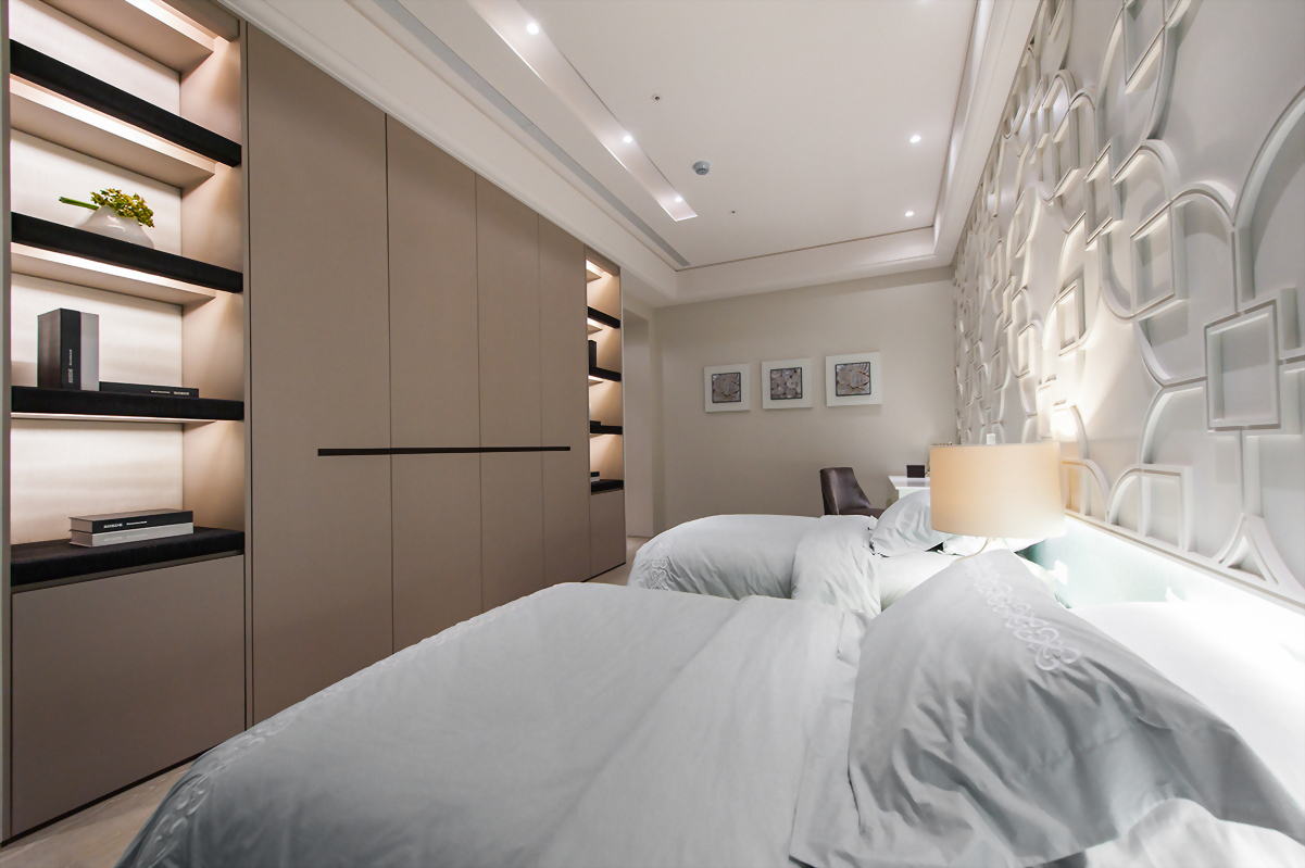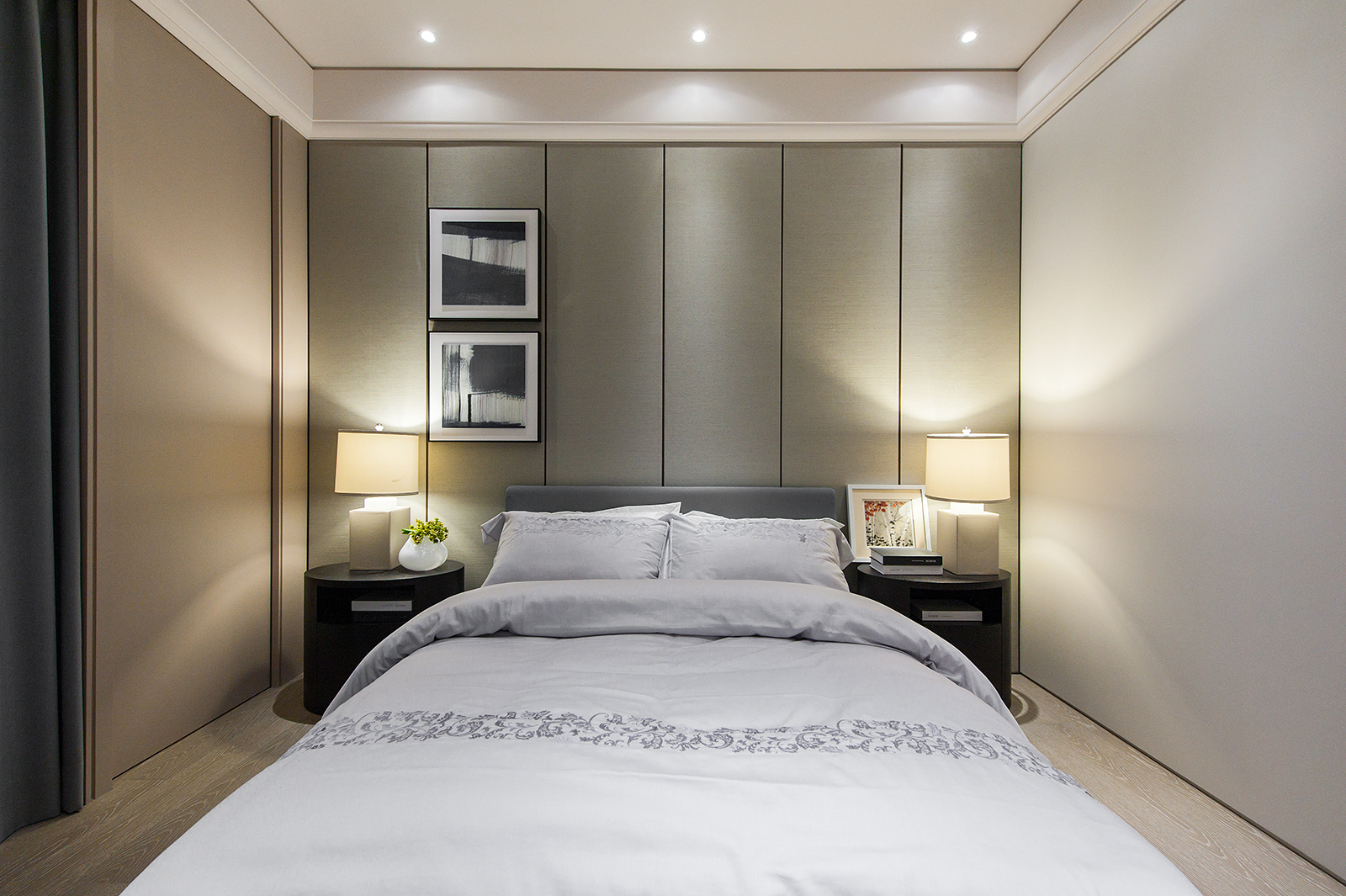 床頭設計新古典裝飾壁面,更顯室內裝潢設計空間的獨特品味。