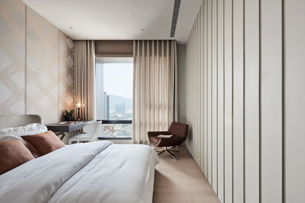 溫潤優雅的視覺感,讓臥室設計多了一份安定感,沒有過多的雜質,室內設計將空間延伸的各個角落都充滿明亮的光輝,並在室內設計師細心的打造下,創造家的整體性,卻又各自都有其空間設計的特色。
