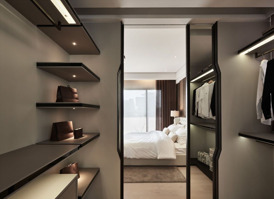 卸除實體隔間框架,採以穿透式的櫃體替代,賦予視覺延伸的效果。