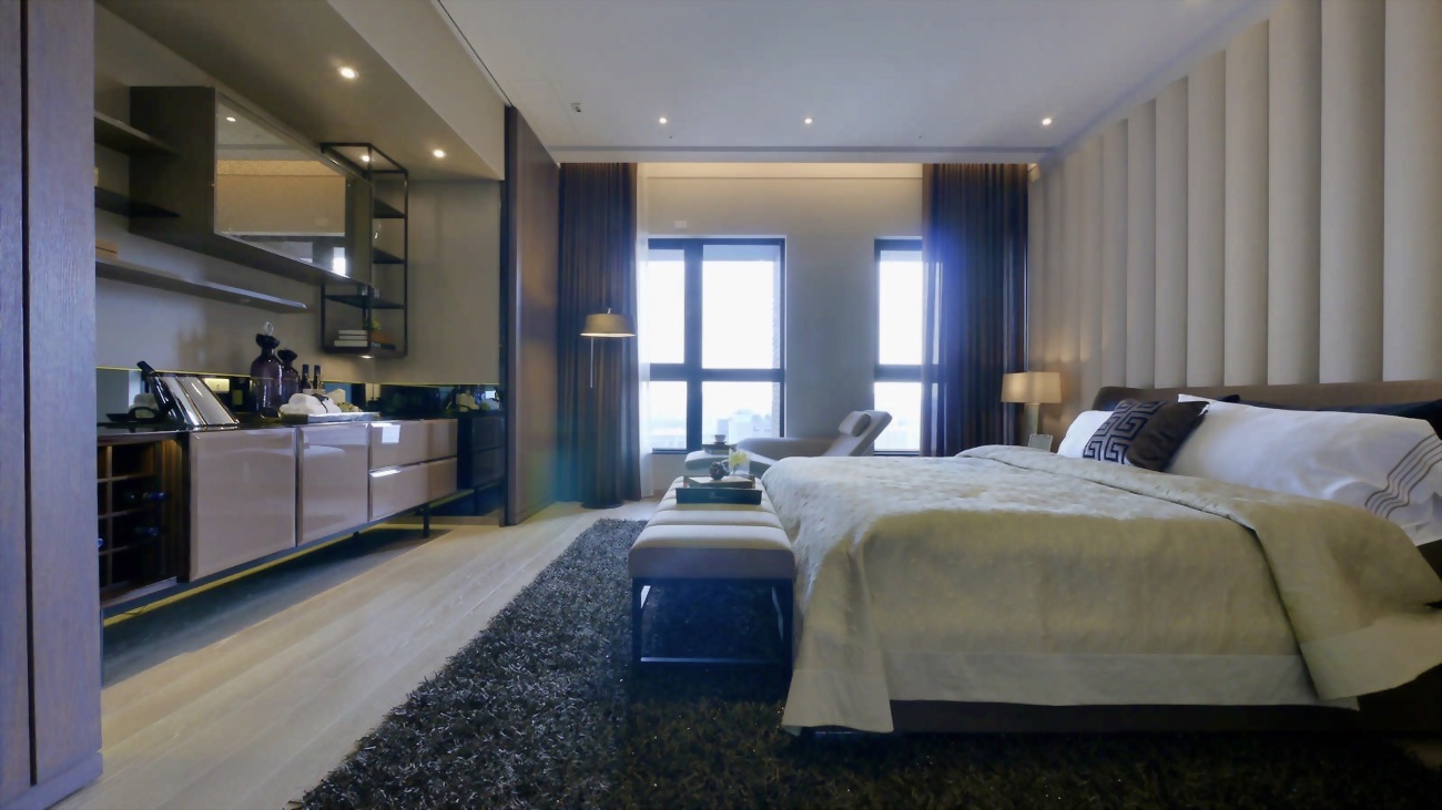 公領域寬裕且富含高機能的收納系統家具設計,創造出高尚清雅的裝潢風格視覺效果。