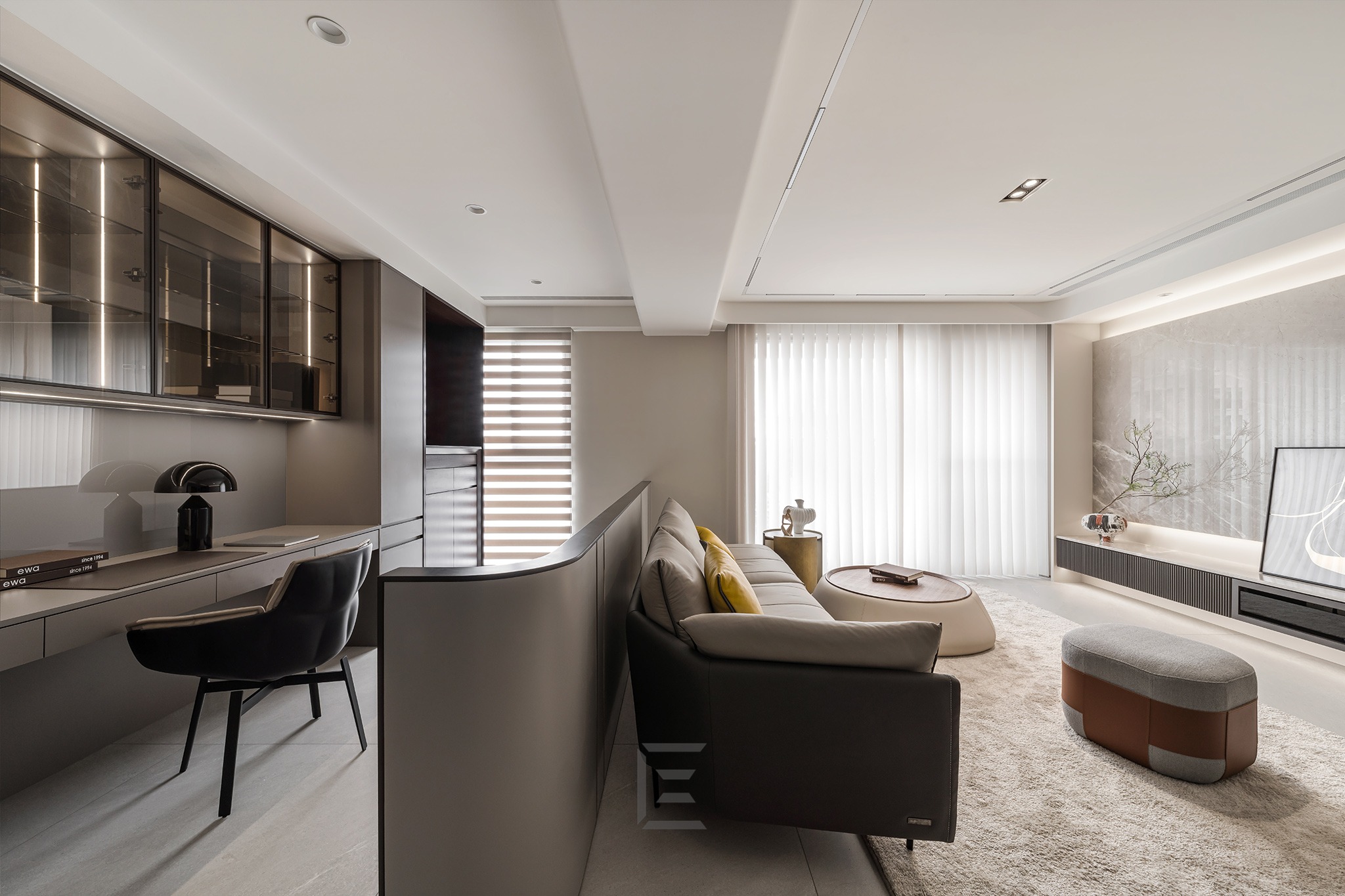 客廳後方為書房,整合收納與工作的空間。
