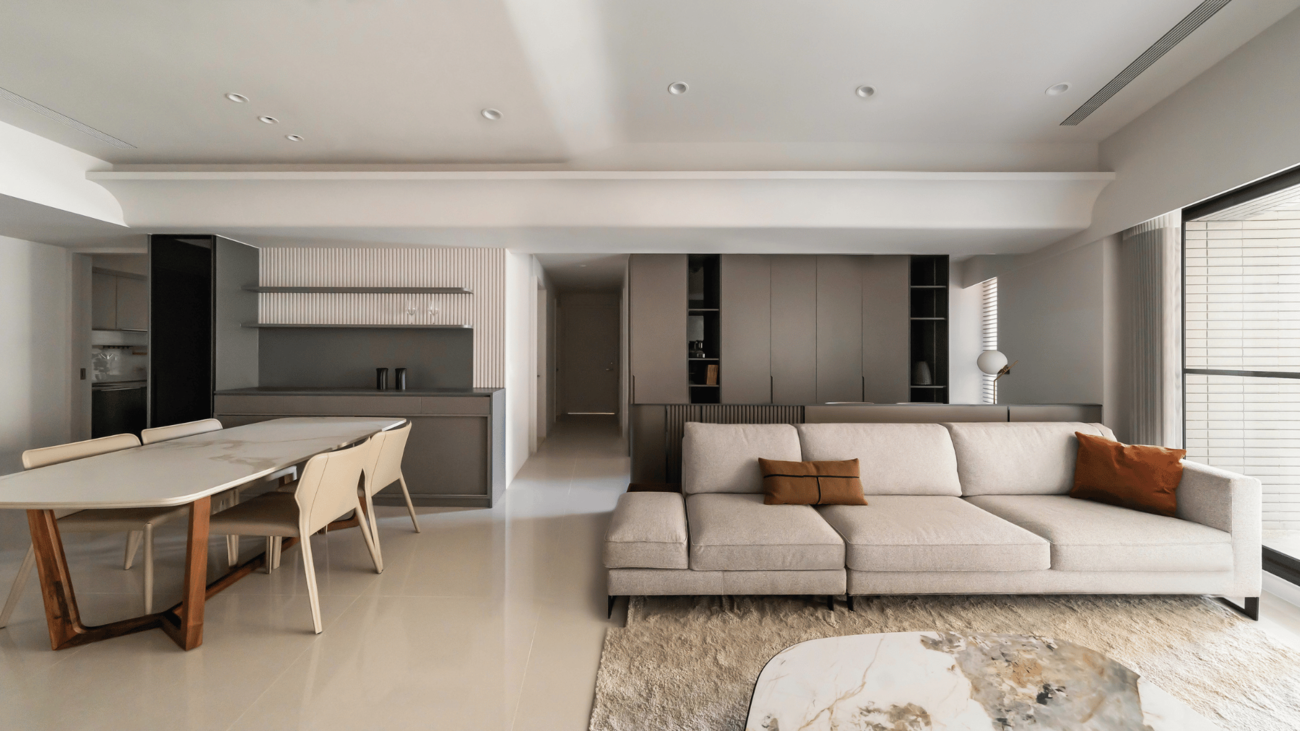 御之苑的屋主相當重視整體公領域的收納,故下方則是最簡約的矮櫃,僅守樸實簡約但超強大的收納本份,讓客廳設計簡單一致不雜亂。