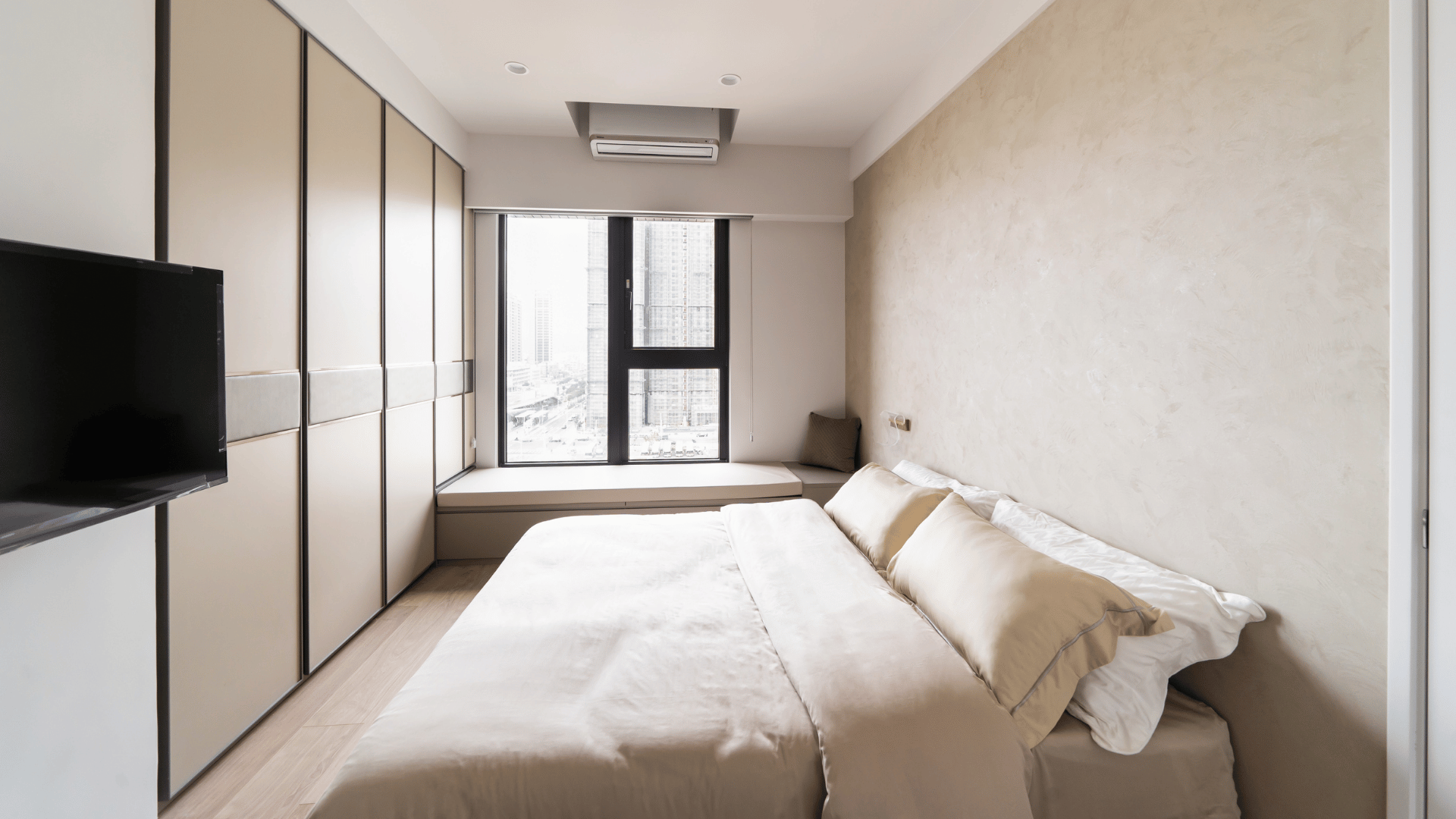 主臥室窗邊很特別的還做了臥榻設計,讓屋主可以隨時在採光優風景佳的窗邊,好好享受一個人的輕鬆時光。