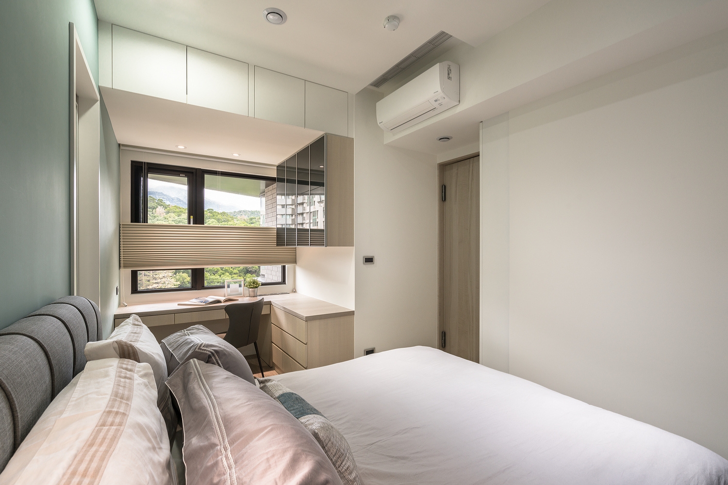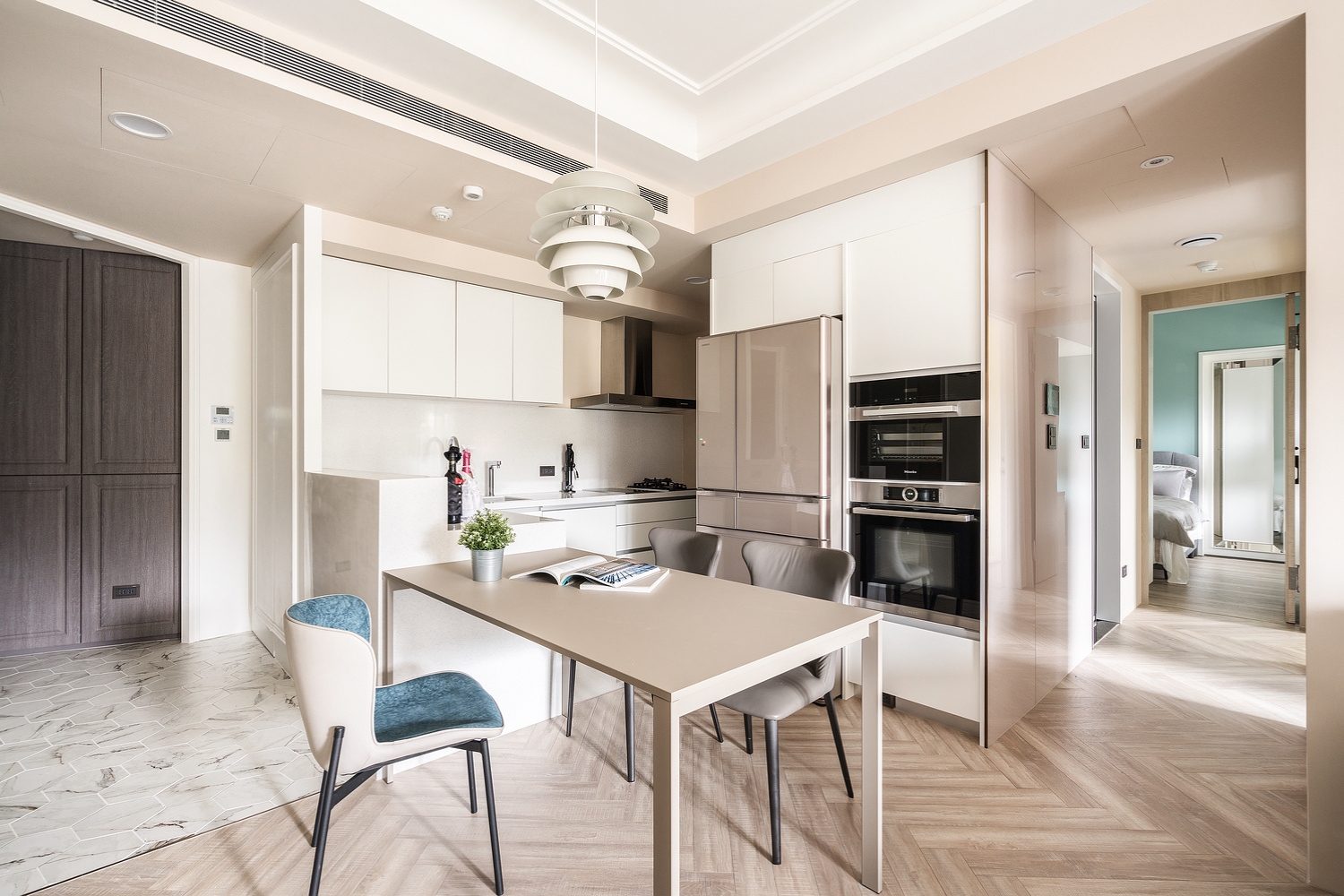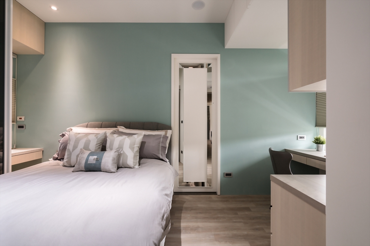 以空間機能為基底,融入霧綠、亮藍與柔黃的三重色階,讓每個空間都擁有專屬的光與氣息。設計以現代風為骨、輕奢為韻,線條俐落卻不失溫潤,搭配細膩的材質與柔光層次,勾勒出一處靜謐又充滿生活溫度的都會雅寓,歲月在其中緩緩流動。